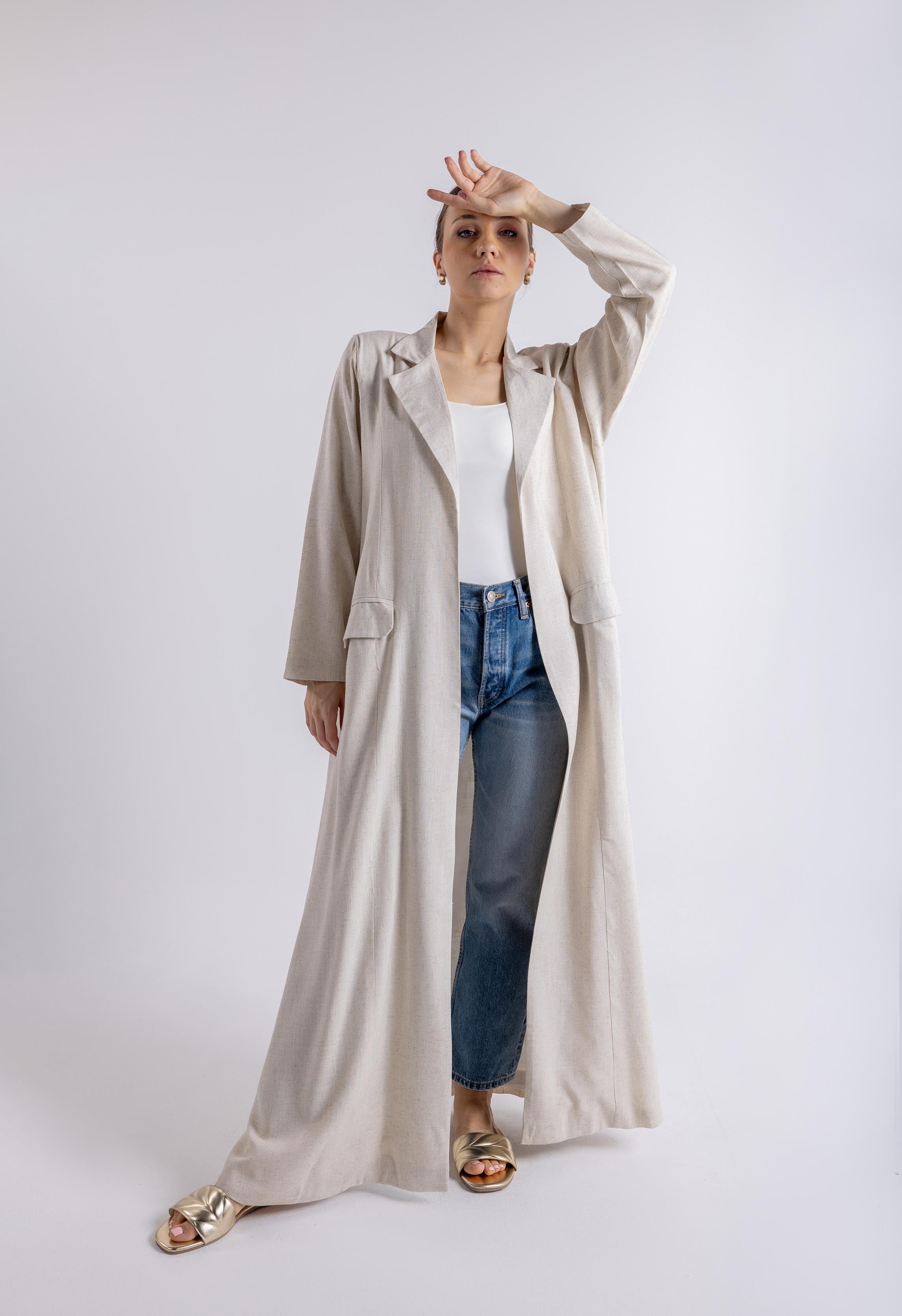 2465006-عباية ماكسي بقصّة بليزر