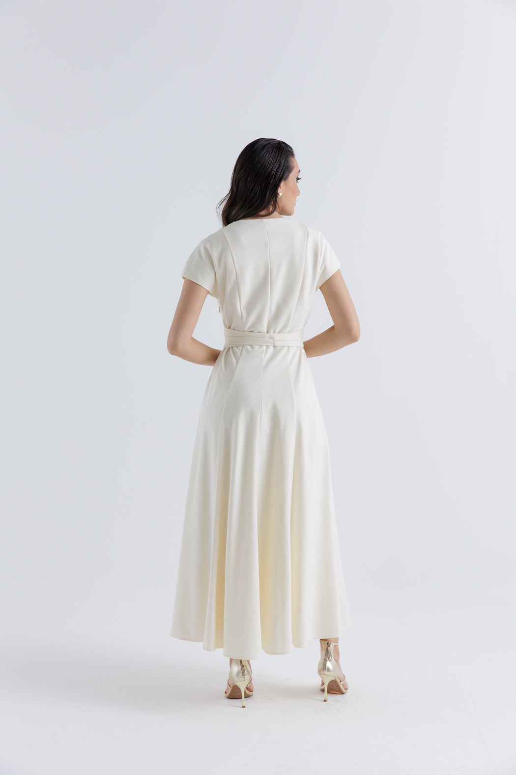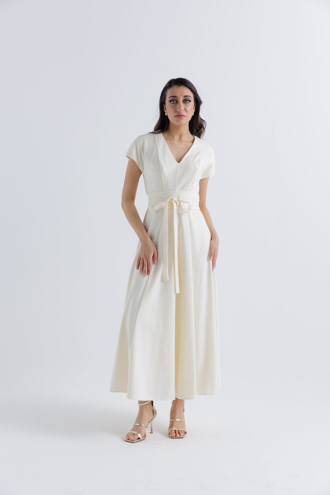 تألقي بإطلالة أنيقة مع فستان الماكسي الأنيق بحزام للخصر، المصمم ليبرز جمال قوامك بأسلوب راقٍ ومميز. يتميز هذا الفستان بفتحة رقبة على شكل حرف V وأكمام قصيرة، مما يمنحه مظهرًا أنيقًا ومتقنًا. يحدد الخصر المشدود مع حزام قابل للربط منحنيات الجسم بطريقة رائعة، بينما تضيف التنورة الطويلة المتدفقة لمسة من الرقي والنعومة، مما يجعله خيارًا مثاليًا للمناسبات الرسمية والسهرات المميزة.