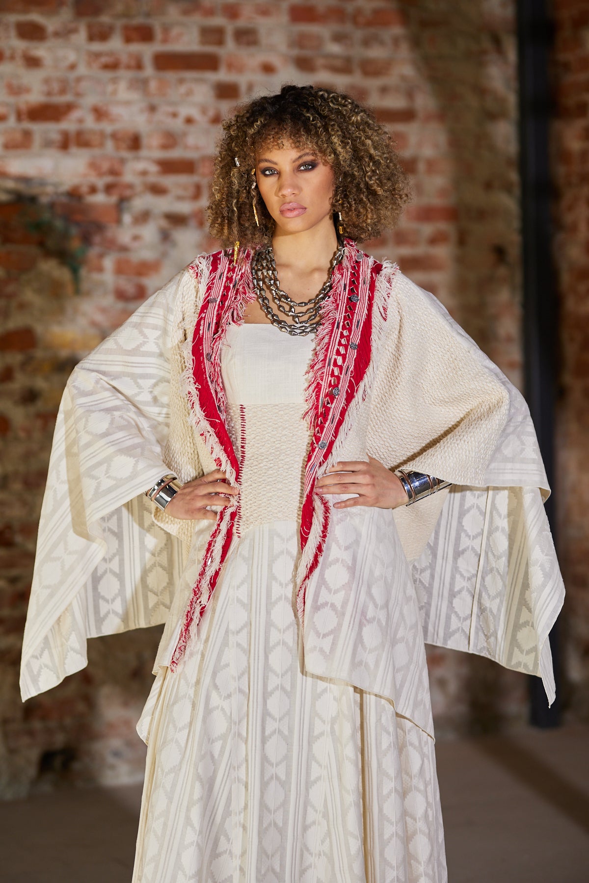 جزء من مجموعة ليالي رمضان، يعكس هذا التصميم روح الموسم من خلال الطبقات الأنيقة، والنقوش الحرفية، والقصّات الخالدة. استُلهمت المجموعة من دفء الأمسيات الرمضانية وأناقتها، لتجمع بين الأنوثة العصرية والفخامة الهادئة بطابع تراثي راقٍ.