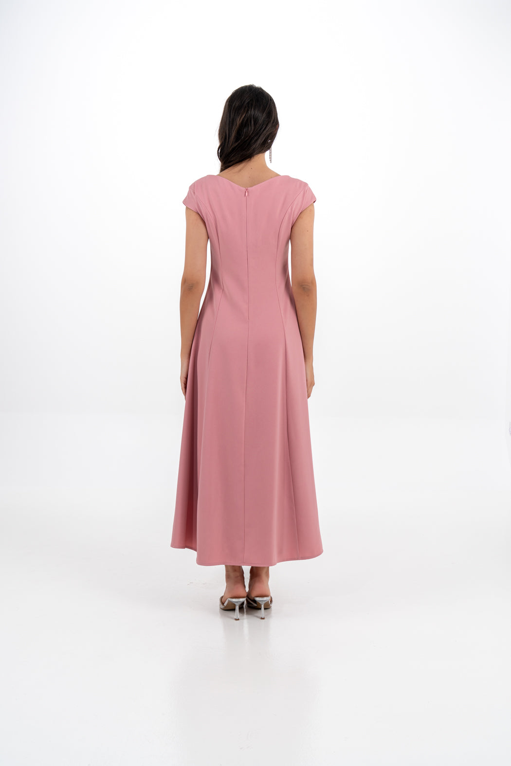 ارتديه مع حذاء بكعب معدني وإكسسوارات لامعة لإطلالة سهرة راقية. مثالي لحفلات الزفاف، المناسبات الرسمية، والسهرات الخاصة.
