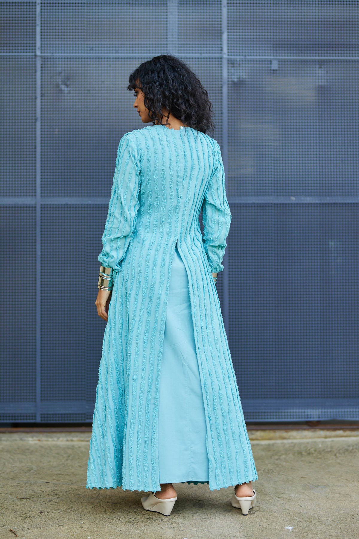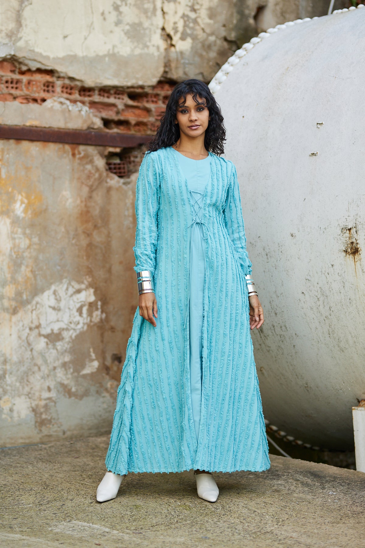 يتميز هذا الفستان الماكسي الراقي المكون من قطعتين من تصميم أبرار المبارك بالأناقة والمرونة في التنسيق. مثالي للمناسبات الفاخرة، يتألف من فستان داخلي أنيق وطبقة خارجية مزخرفة بنقوش مميزة، مما يتيح لكِ عدة خيارات للتنسيق بين الإطلالة الرسمية والعصرية.