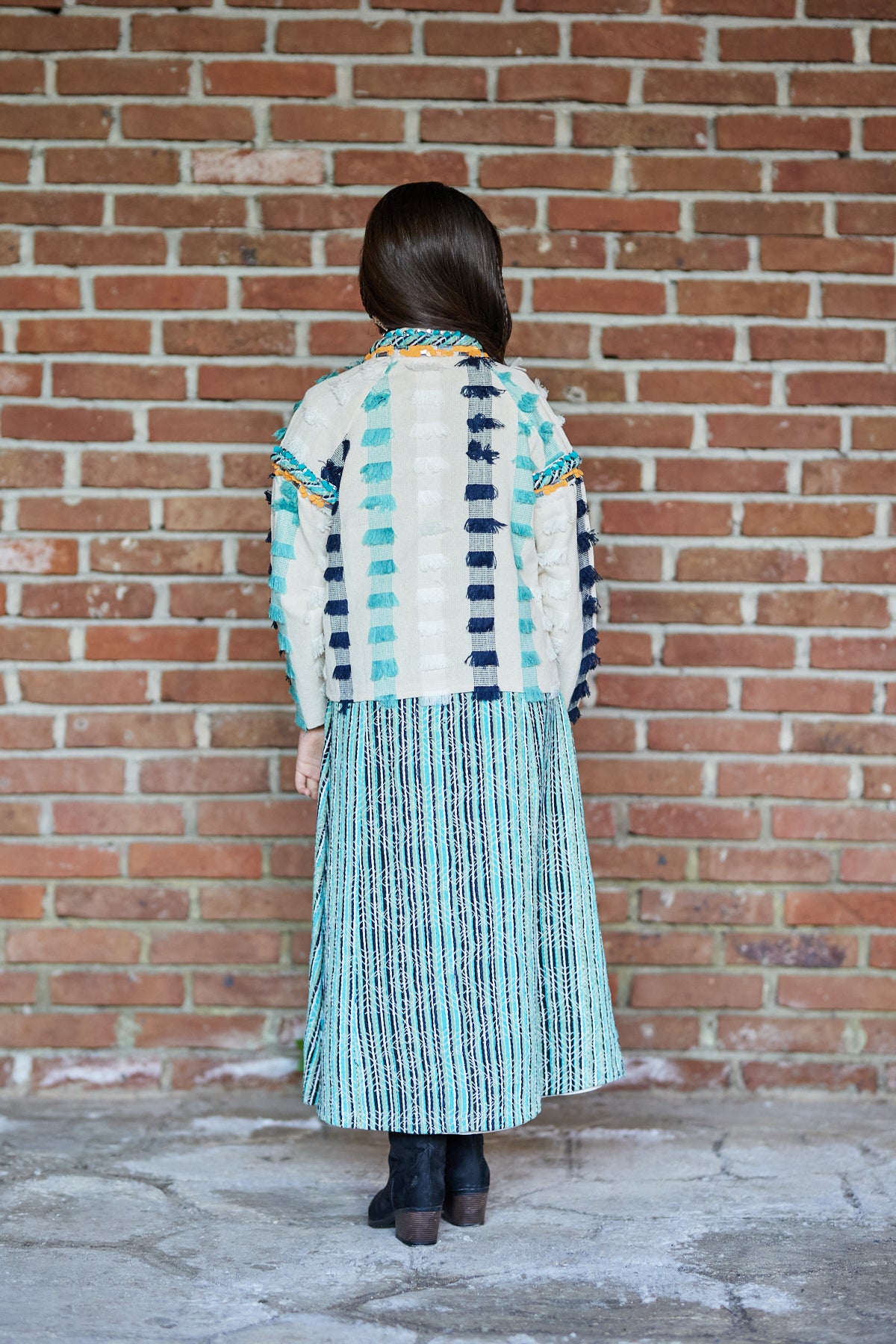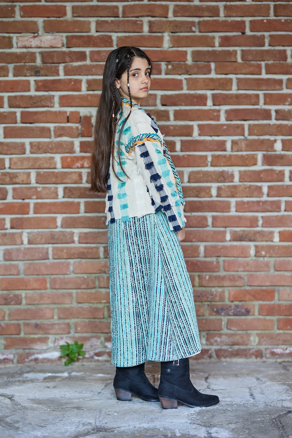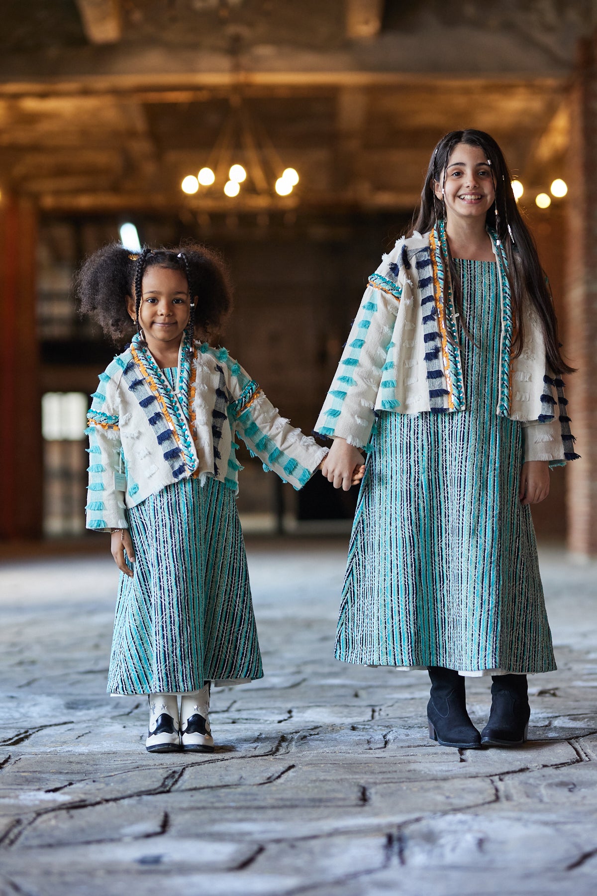 من تصميم أبرار المبارك، يتميز هذا الطقم الفاخر المكون من قطعتين بأنه الخيار المثالي للفتيات الصغيرات للاحتفال بـ رمضان والعيد. يجمع بين سترة منسوجة بتفاصيل مميزة وفستان أنيق بتطريزات راقية، ليقدم مزيجًا رائعًا بين التصميم التراثي والأناقة العصرية. (يمكن تنسيقه مع طقم الأم – 2509003 – لإطلالة عائلية متناسقة!)
