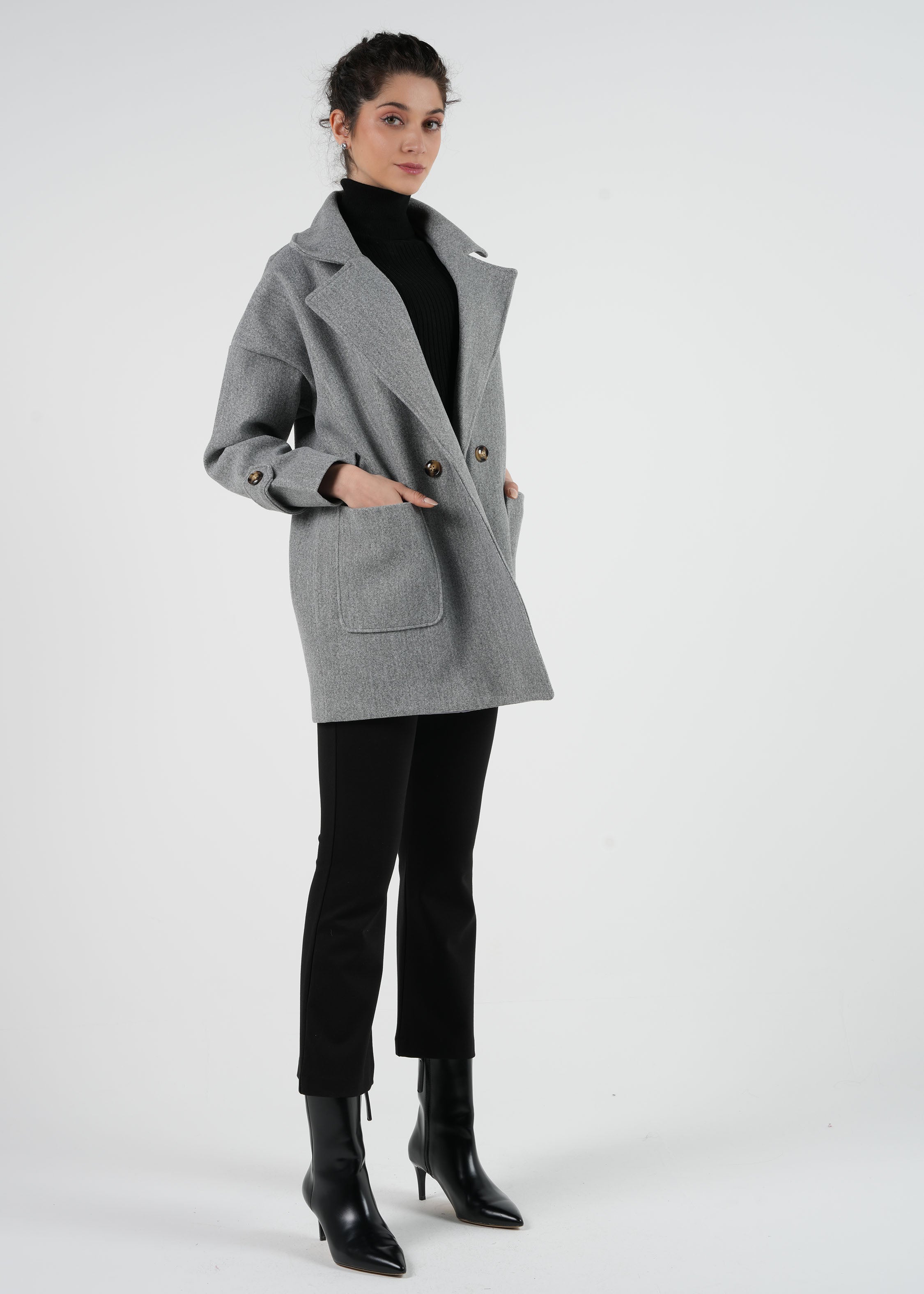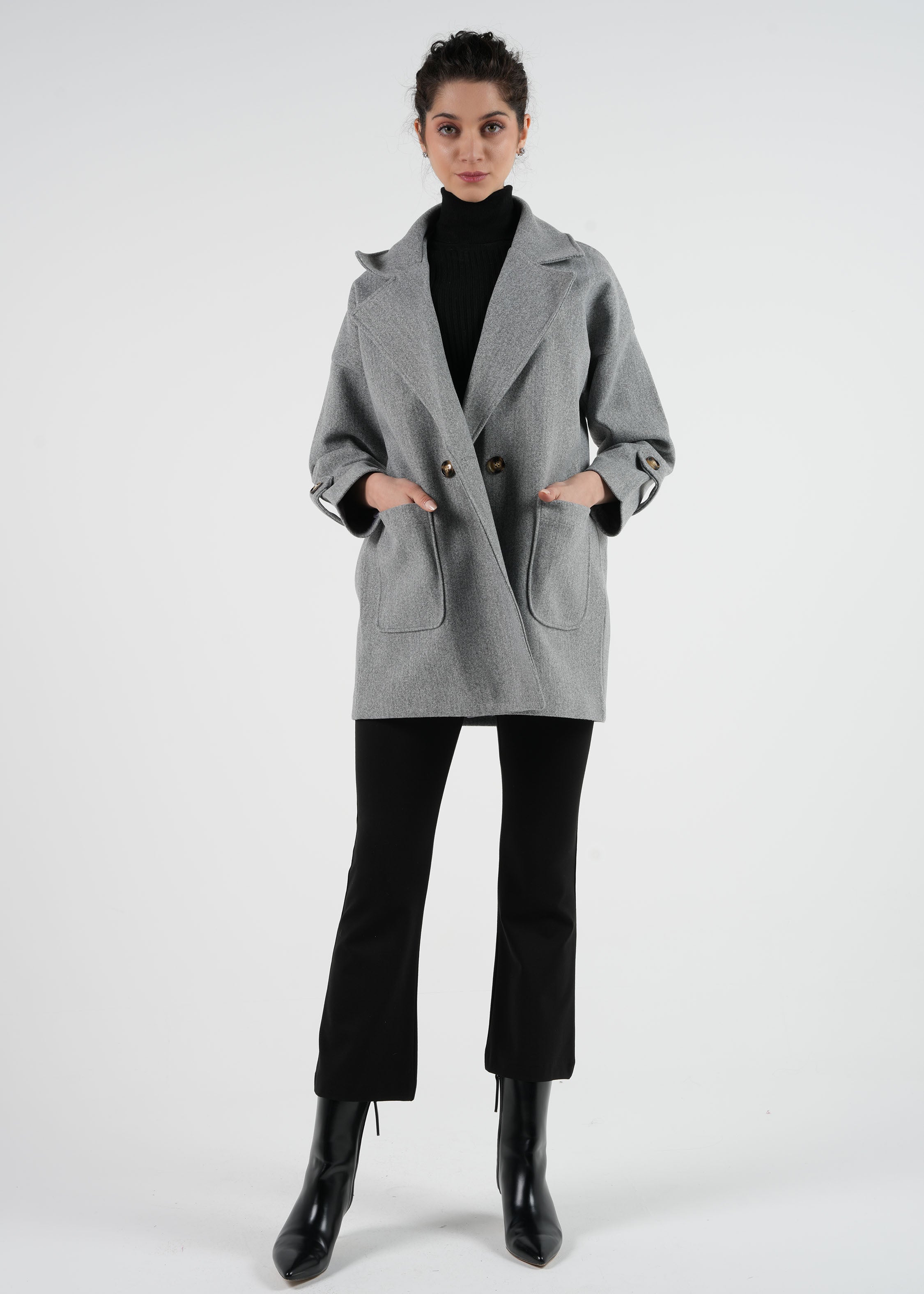 أضف لمسة من الأناقة السهلة إلى خزانة ملابسك مع هذا المعطف الواسع مزدوج الأزرار. يتميز بياقة كلاسيكية عريضة، وجيوب أمامية عملية، وتفاصيل أنيقة من الأزرار على الأكمام، مما يضفي على هذا المعطف مظهرًا عصريًا بلمسة خالدة. يضمن التصميم الواسع قليلاً الراحة والتنوع، مما يجعله مثاليًا للارتداء فوق الملابس الكاجوال أو الرسمية.