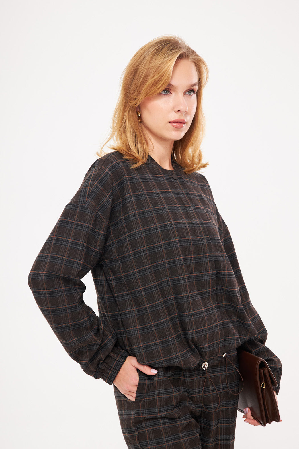 تجمع سترة القاذفة ذات الأزرار ذات النمط المربع بين السحر الكلاسيكي واللمسة العصرية. بفضل قصتها المريحة ونقشتها المربعة الرقيقة، فهي مثالية لارتدائها فوق قممك المفضلة. تضيف الأكمام والحاشية المضلعة لمسة من البنية، مما يجعل هذه السترة خيارًا متعدد الاستخدامات لكل من الإطلالات غير الرسمية والأنيقة.