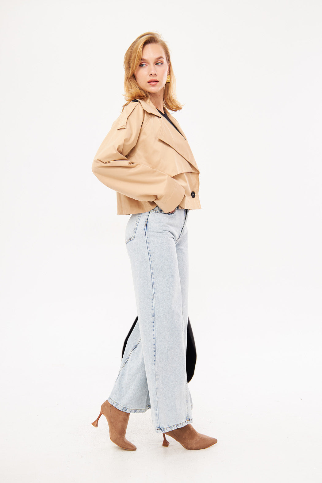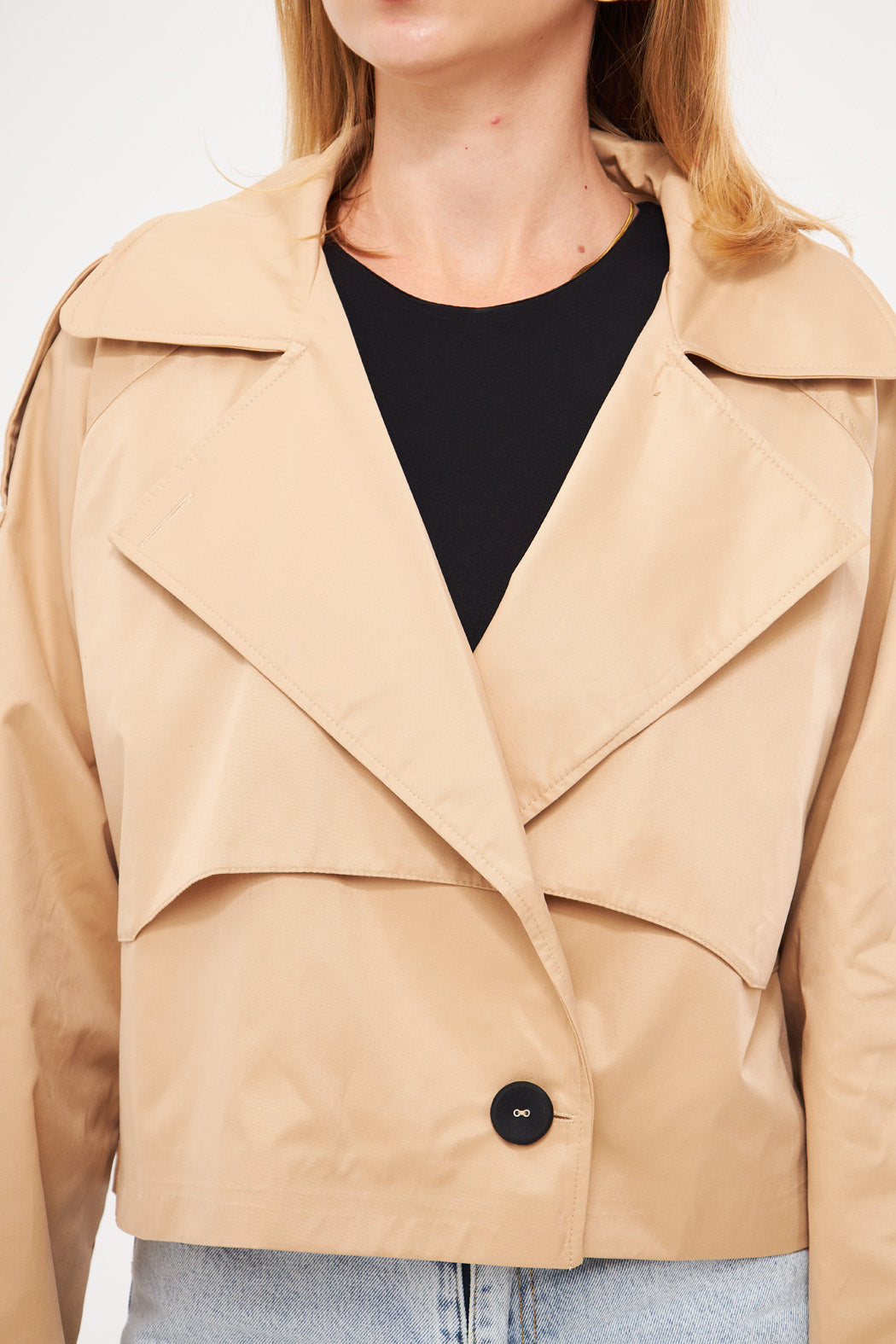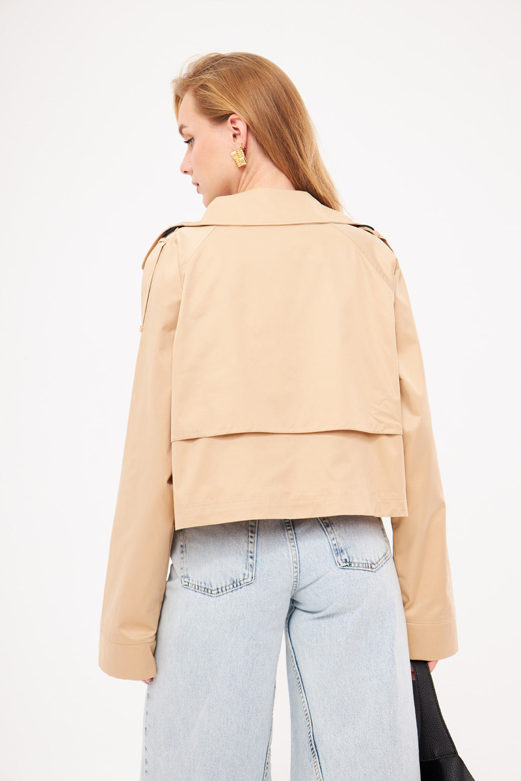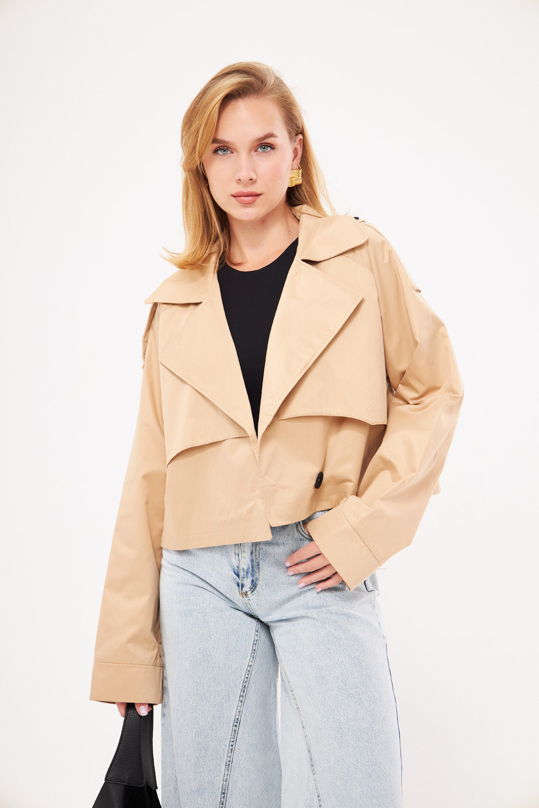 يجمع هذا الجاكيت القصير بين الأناقة والعملية بتصميمه البسيط وقصته المريحة. مثالي للارتداء فوق الملابس غير الرسمية أو شبه الرسمية، ويضيف لمسة راقية إلى أي مجموعة.