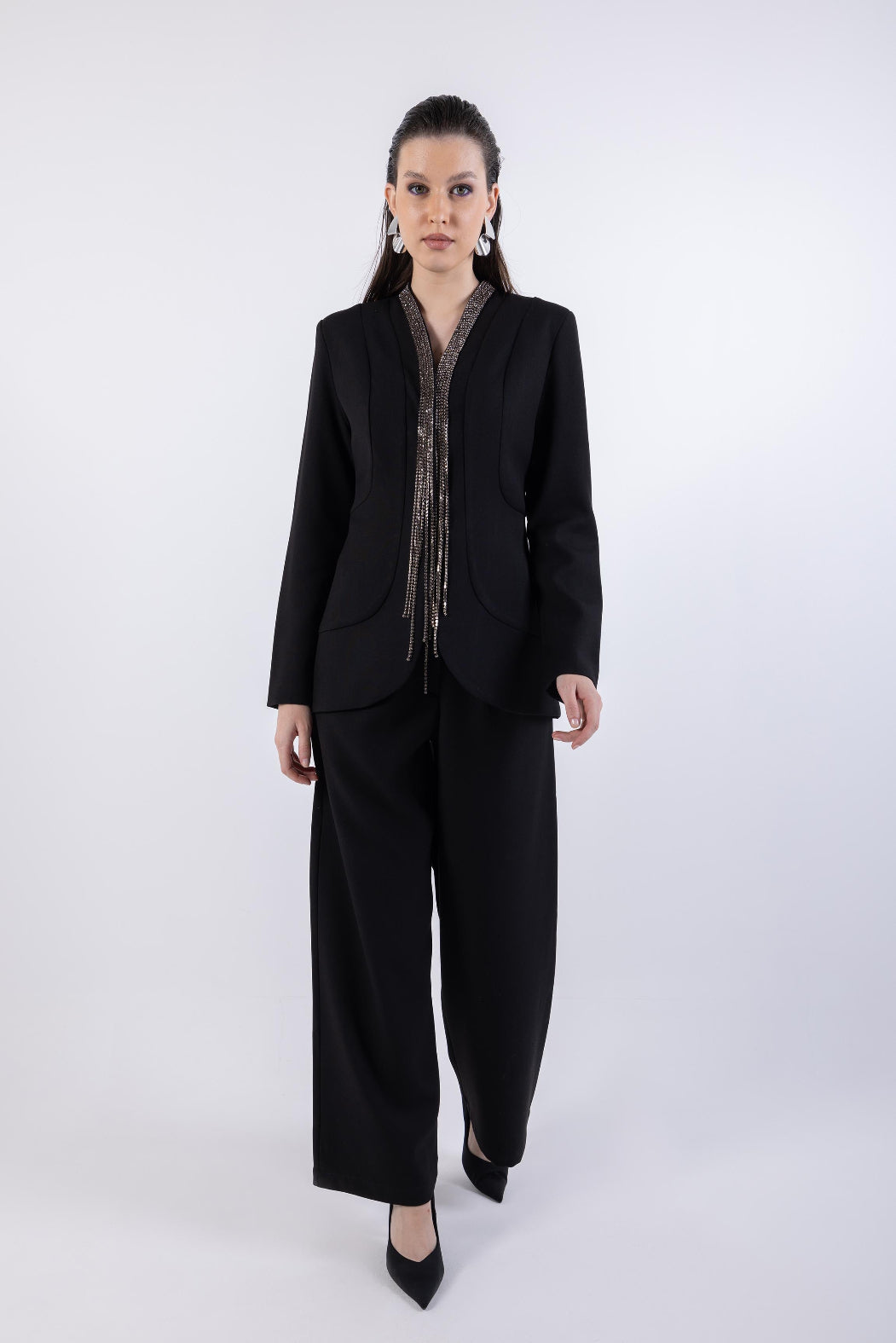 تم تصميم هذه السراويل المستقيمة الأنيقة لتوفير مظهر أنيق لأي مناسبة رسمية. مصنوعة من قماش عالي الجودة ومفصل، فهي توفر ملاءمة مريحة مع الحفاظ على صورة ظلية متطورة. تخلق قصة الساق المستقيمة خطًا أنيقًا يلائم الشكل ويتناسب جيدًا مع مجموعة متنوعة من القمم، من القمصان ذات الأزرار إلى البلوزات. متوفرة بألوان سادة متعددة الاستخدامات، يمكن ارتداء هذه السراويل بسهولة مع الكعب العالي والسترة الرسمية للإعدادات المهنية أو تنسيقها بشكل غير رسمي مع الأحذية المسطحة لبيئات أكثر استرخاءً. تعتبر السراويل الرسمية ذات الساق المستقيمة إضافة أساسية لأي خزانة ملابس، تجسد