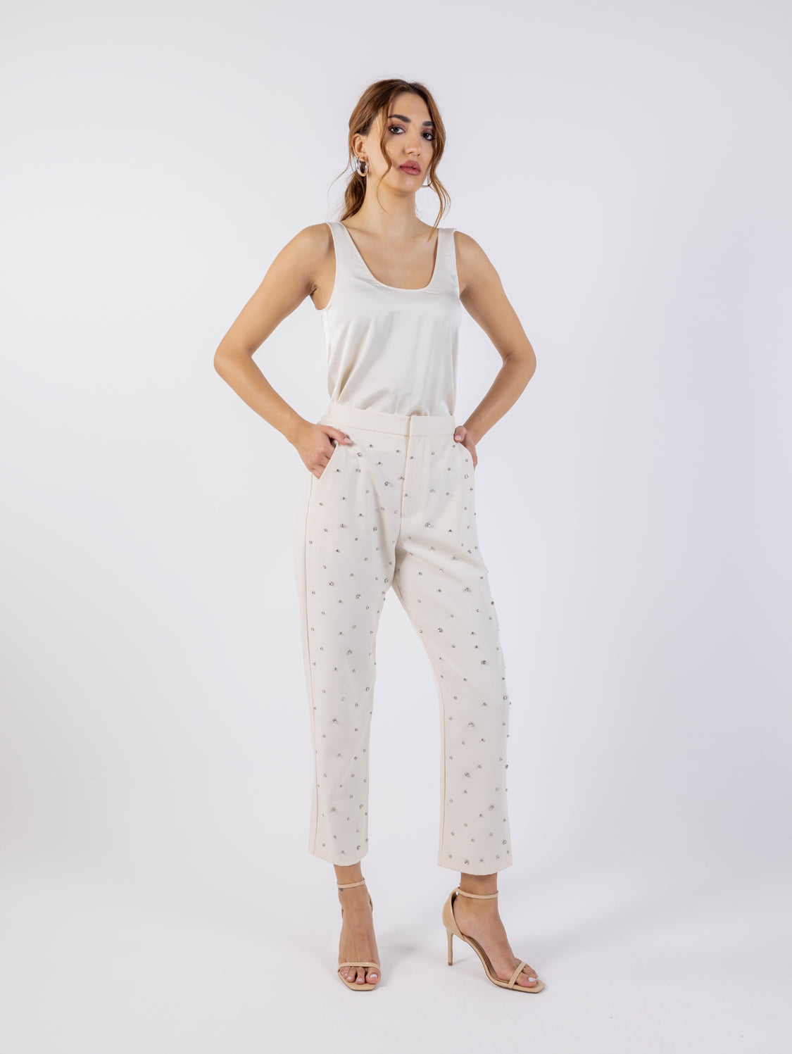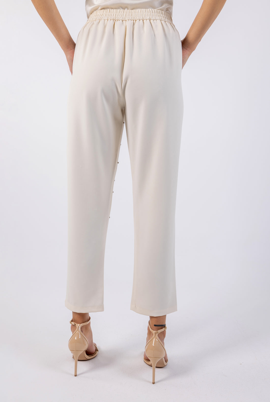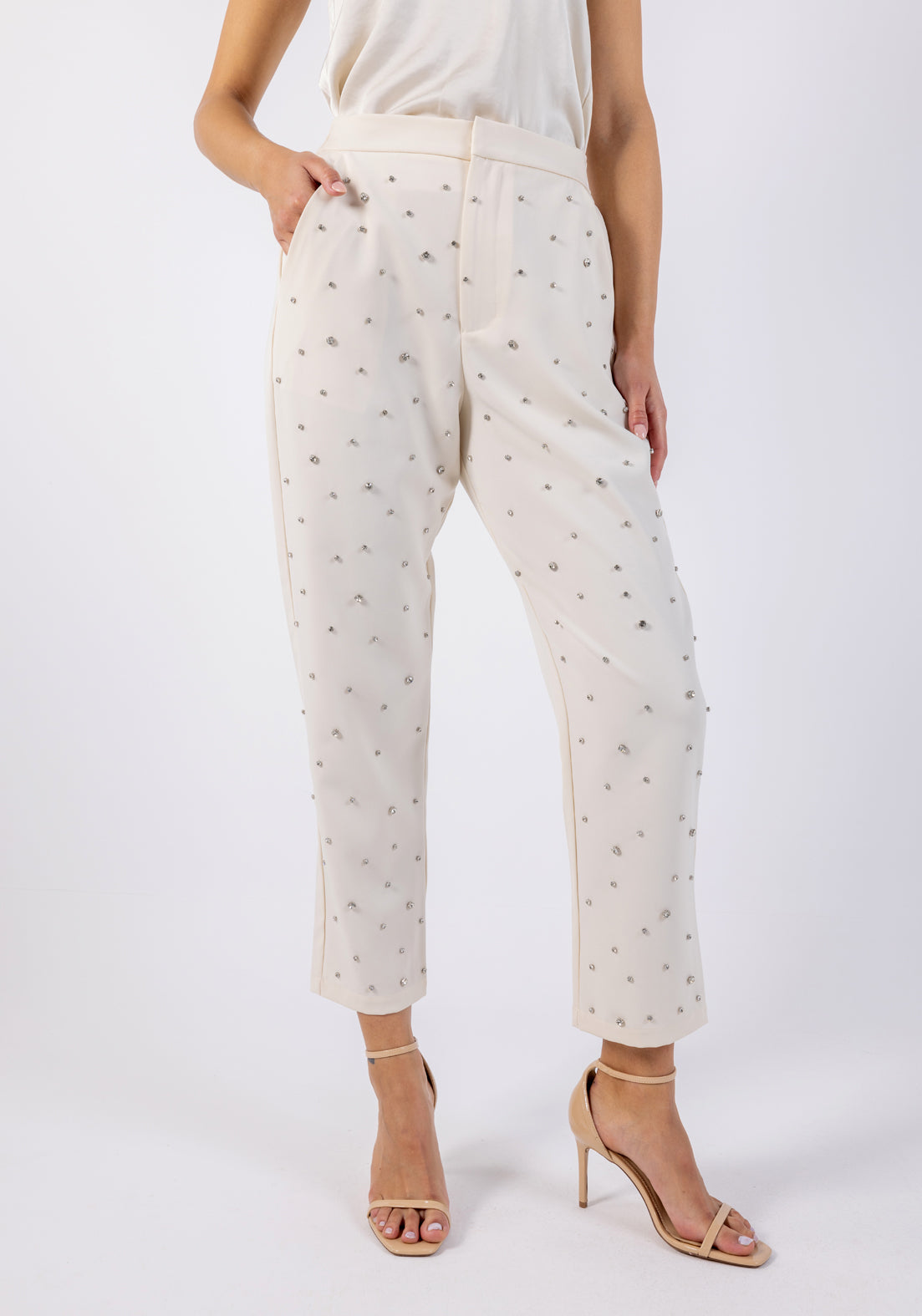 قم بترقية خزانة ملابسك الرسمية مع بنطالنا الرسمي المزين بالمسامير. يتميز هذا البنطال بتصميم مصمم خصيصًا وتفاصيل مرصعة بالمسامير، ويجمع بين الرقي والراحة. مصنوع من قماش عالي الجودة، وهو مثالي لكل من المكتب والمناسبات المسائية. يمكنك ارتداؤه مع قميص أنيق وسترة رسمية لإطلالة واثقة وأنيقة.