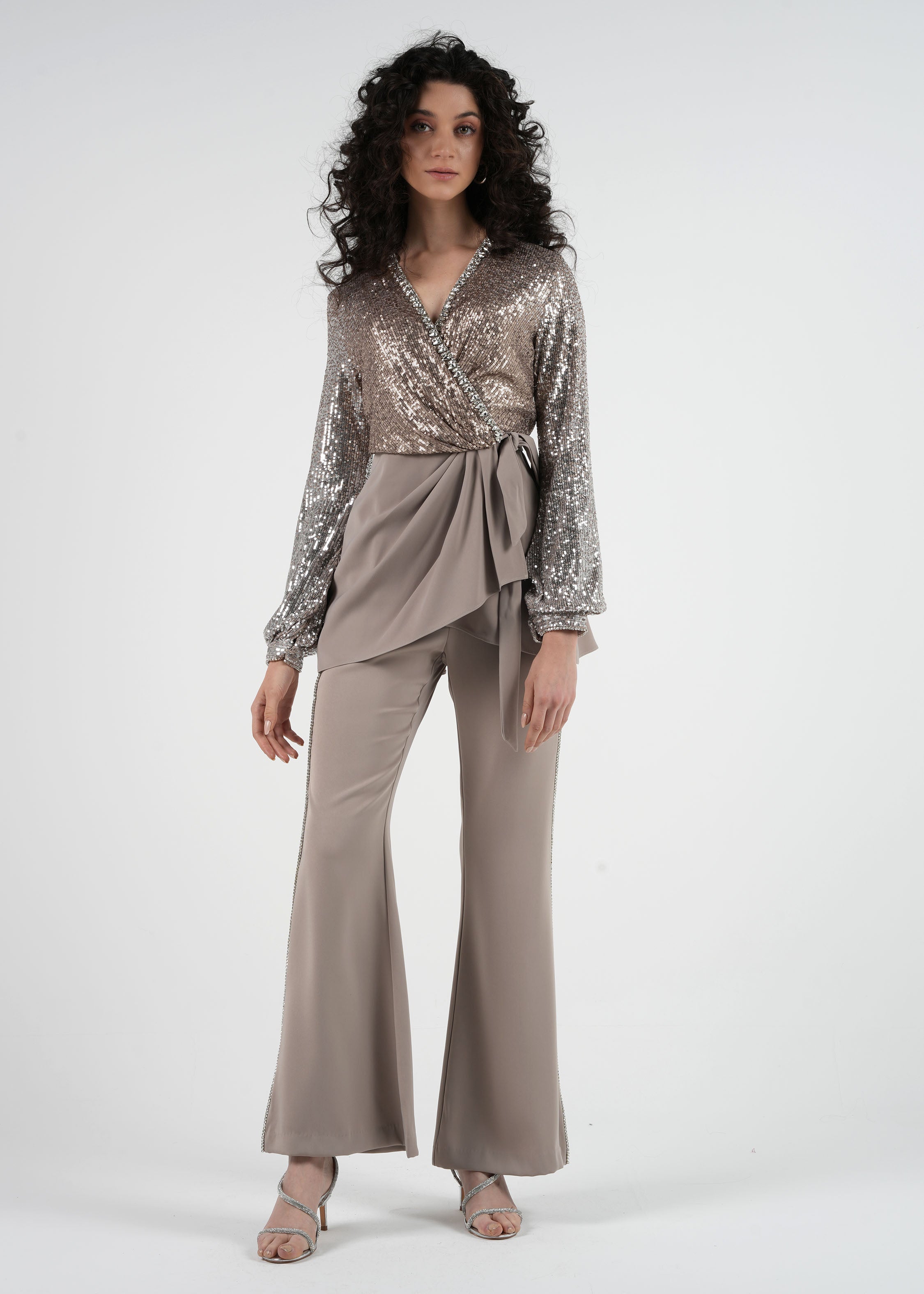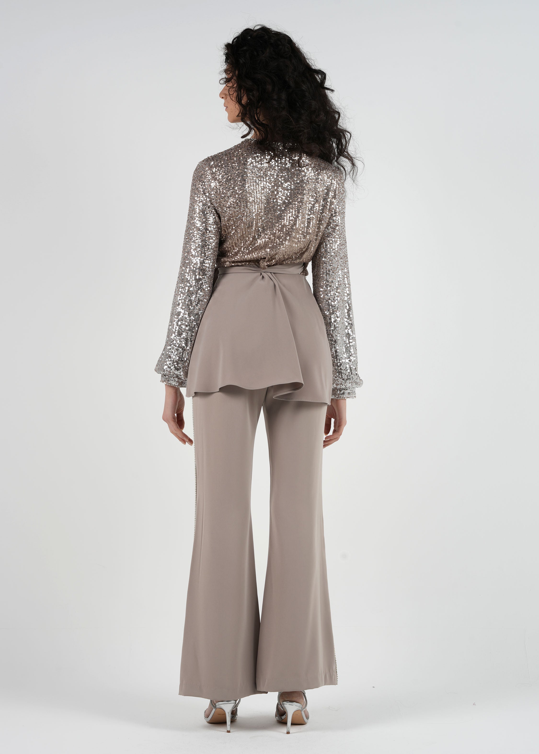 ارتقي بخزانة ملابسك مع هذا البنطال الأنيق ذو الخصر المرتفع والقصة المستقيمة، الذي يتميز بخط مزين أنيق يمتد على الجانبين. تضيف هذه التفاصيل البسيطة والجذابة لمسة من الرقي إلى إطلالتك، مما يجعله خيارًا مثاليًا للحصول على مظهر أنيق ومعاصر. يتميز التصميم ذو الخصر المرتفع بإطالة القوام، مما يجعل هذا البنطال خيارًا متعدد الاستخدامات للمناسبات الرسمية، السهرات المسائية، أو الإطلالات العملية.
