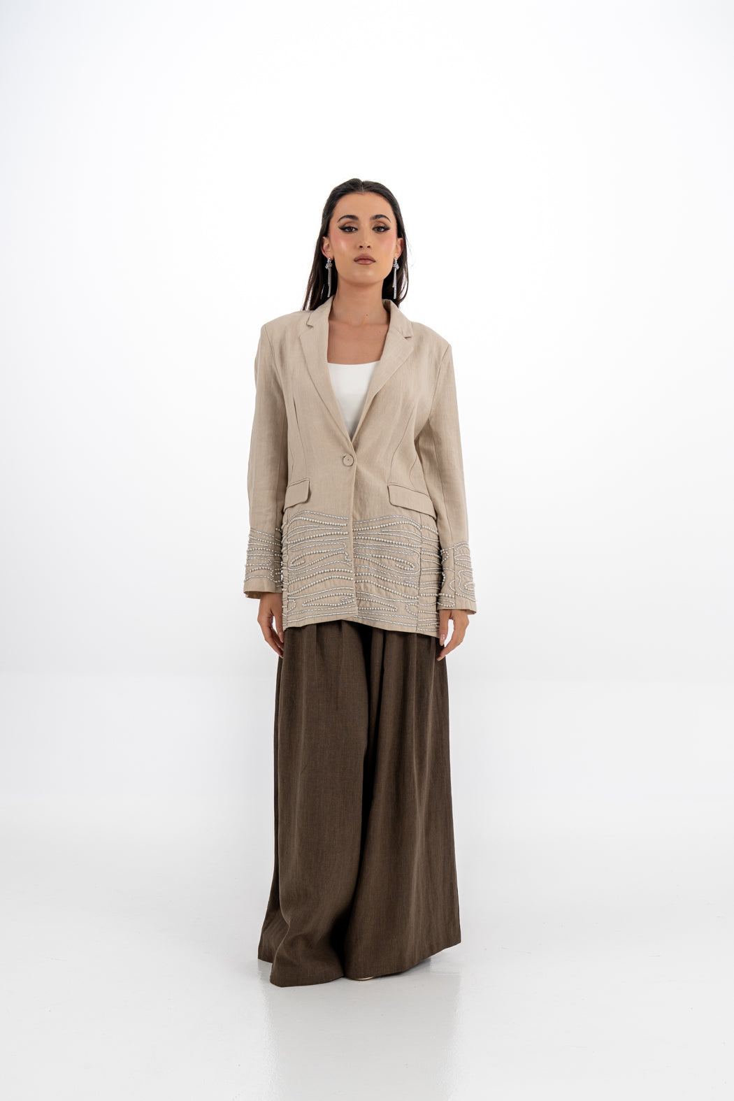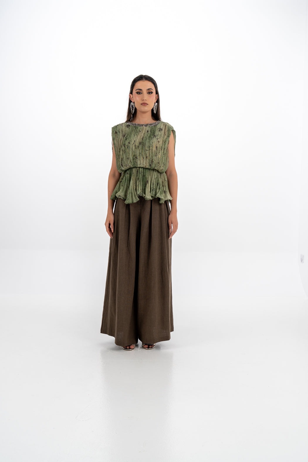 الوصف: تميّزي بإطلالة أنيقة مع هذا البنطال الواسع المصمم بأرجل واسعة وطيات أمامية وخصر عالٍ جذاب. يتميز...