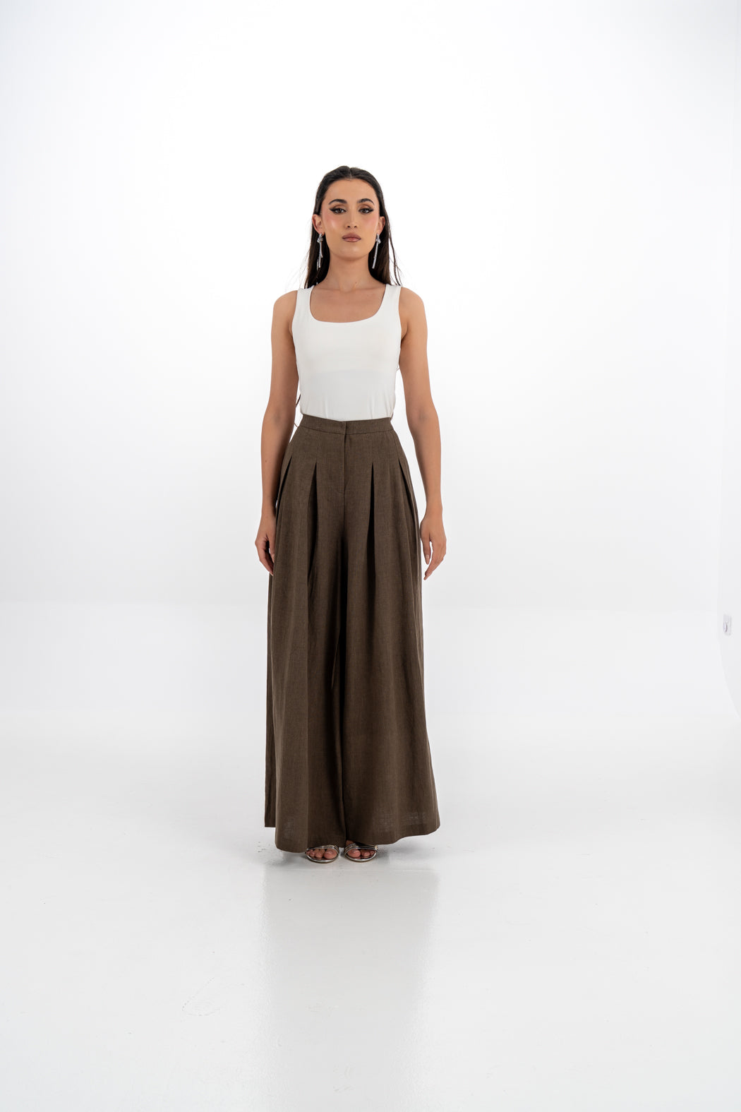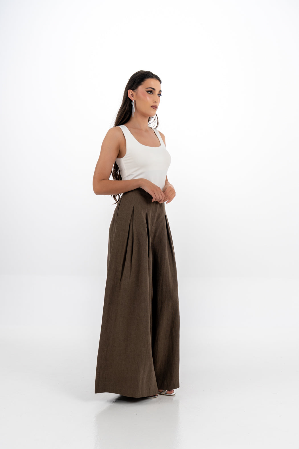 بنطال واسع بخصر عالٍ وطيات أمامية