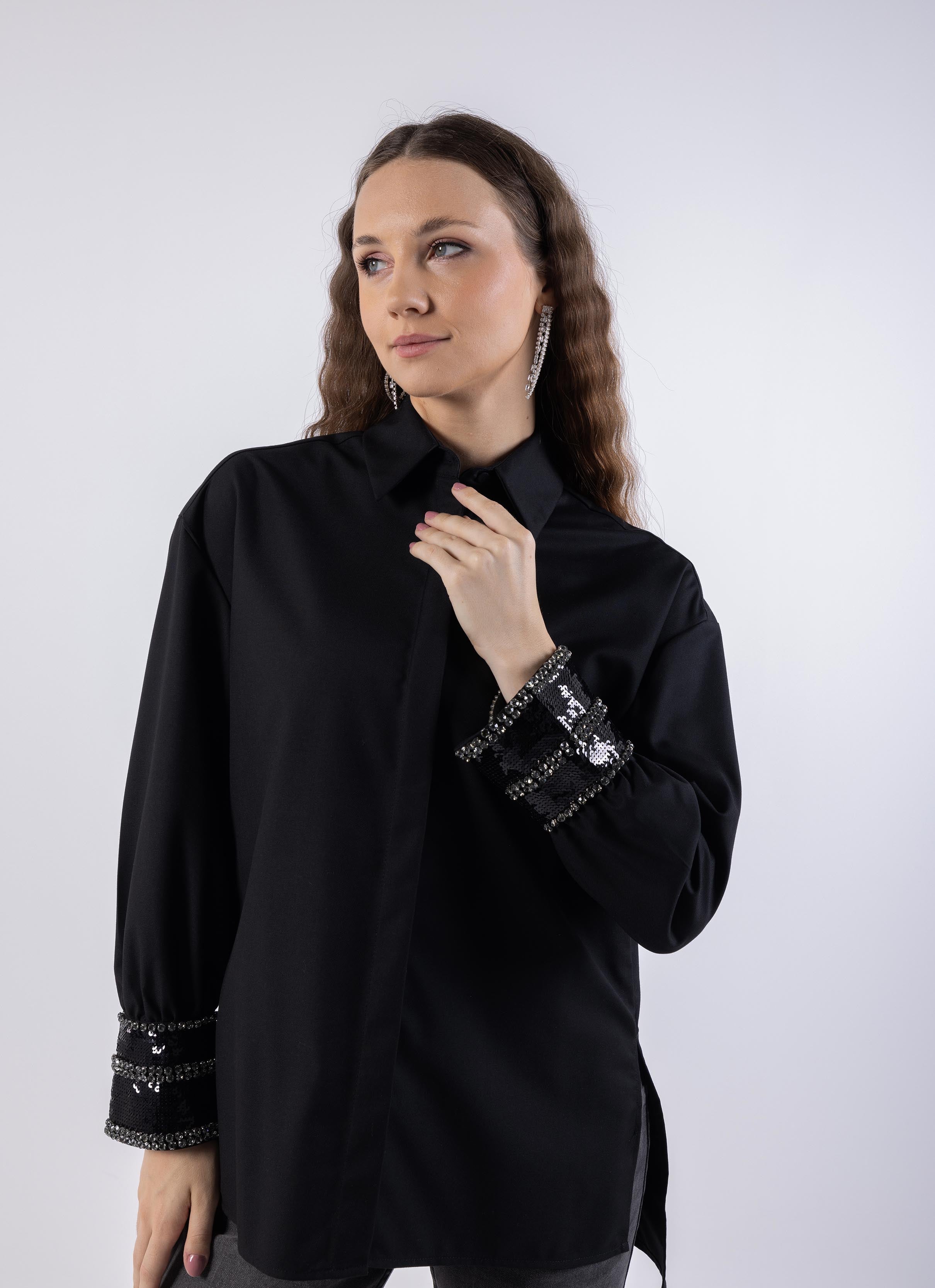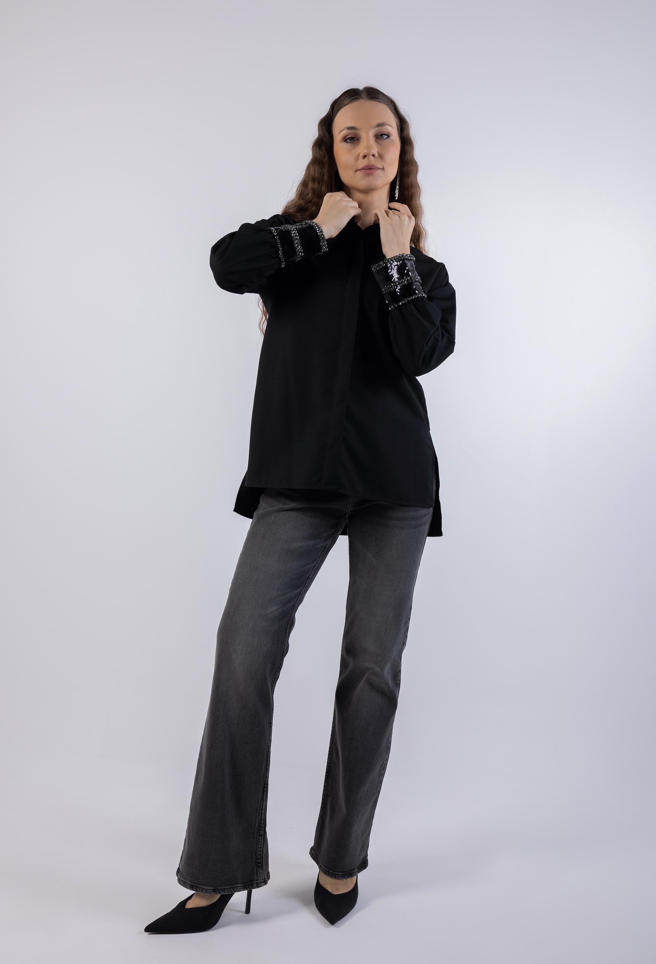 يتميز هذا القميص الأنيق بتصميم أنيق مع حاشية معدنية مذهلة تضيف لمسة عصرية إلى التصميم الكلاسيكي. مصنوع من قماش خفيف الوزن وجيد التهوية، ويوفر الراحة والرقي للارتداء اليومي أو المناسبات الخاصة. يبرز المقاس المخصص الشكل مع السماح لسهولة الحركة، مما يجعله مثاليًا للملابس الكاجوال والأنيقة. تعمل التفاصيل المعدنية المزخرفة عند الحافة على تحسين المظهر العام، مما يجعل هذا القميص قطعة مميزة تتناسب بشكل جميل مع الجينز أو السراويل أو التنانير. متعدد الاستخدامات دون عناء، فهو ضروري -إضافة إلى أي خزانة ملابس عصرية.