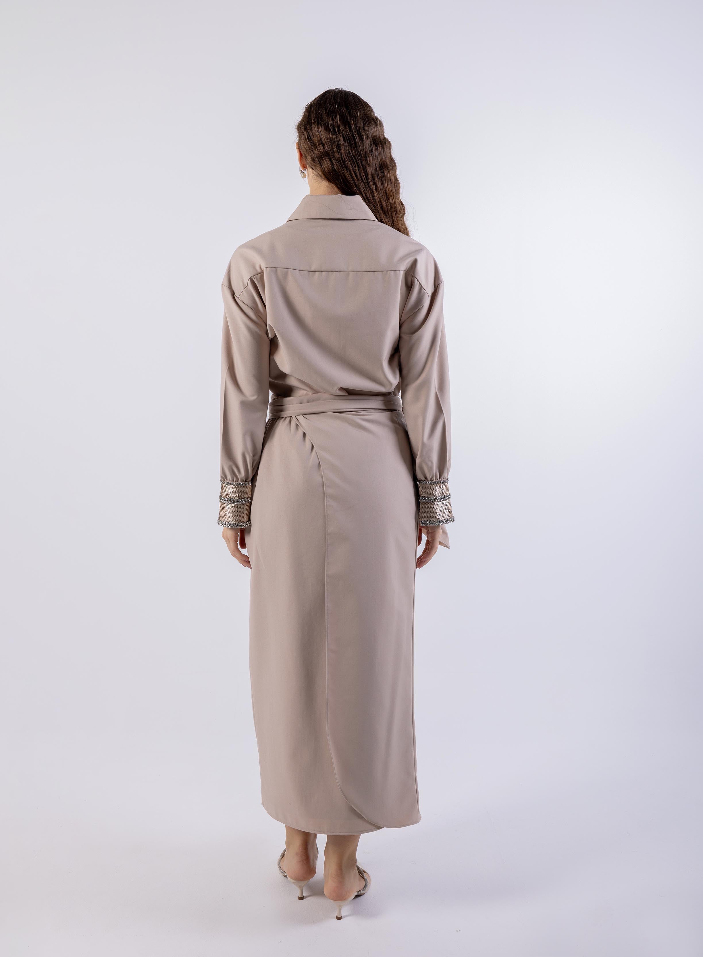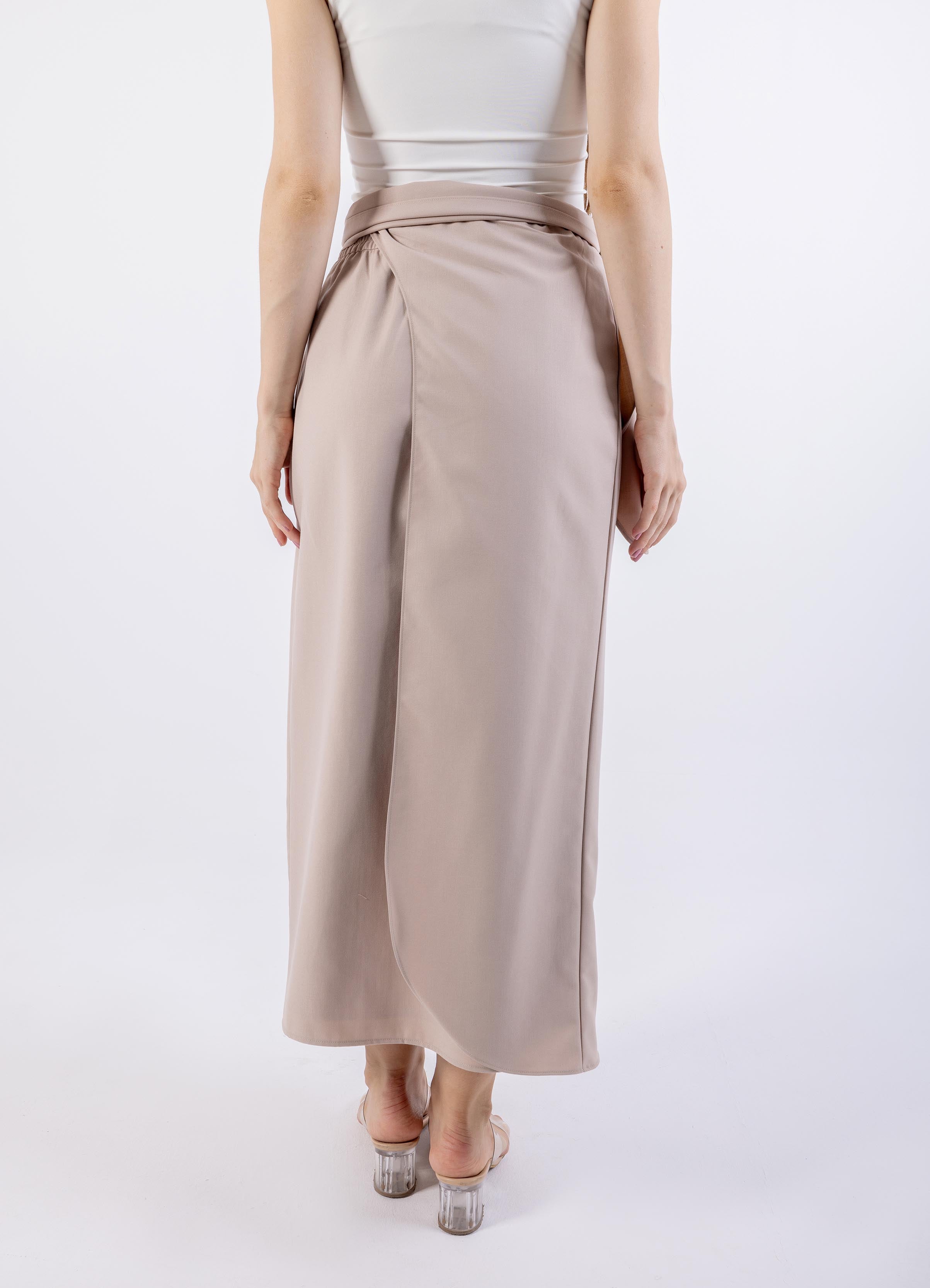 تتميز هذه التنورة الطويلة الأنيقة بتصميم عقدة متداخلة فريدة من نوعها تضيف لمسة معاصرة إلى الصورة الظلية الكلاسيكية. مصنوعة من قماش ناعم وفضفاض، تتدلى بأناقة، وتوفر الراحة والحركة. يبرز خط الخصر المرتفع الشكل، بينما تضيف تفاصيل العقدة لمسة من الرقي والاهتمام البصري. مثالية للنزهات غير الرسمية والمناسبات الرسمية، يمكن إقران هذه التنورة متعددة الاستخدامات مع قمم أو بلوزات ملائمة لإطلالة أنيقة. بتصميمها الجذاب وجاذبيتها الأنيقة، تعد التنورة الطويلة المتداخلة إضافة عصرية لأي خزانة ملابس.