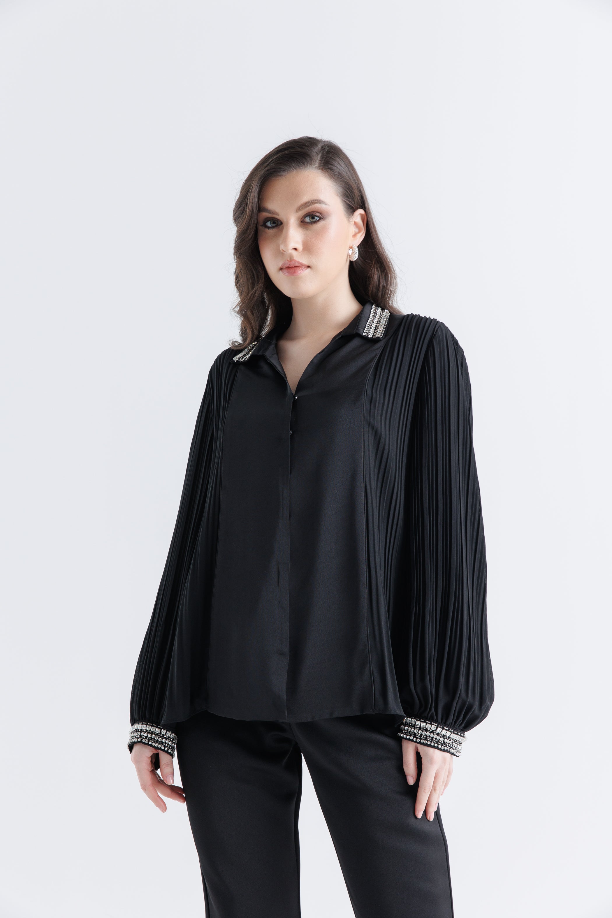 ✔ التصميم: يتميز بأكمام طويلة مطوية تضفي لمسة من الرقي والانسيابية.
