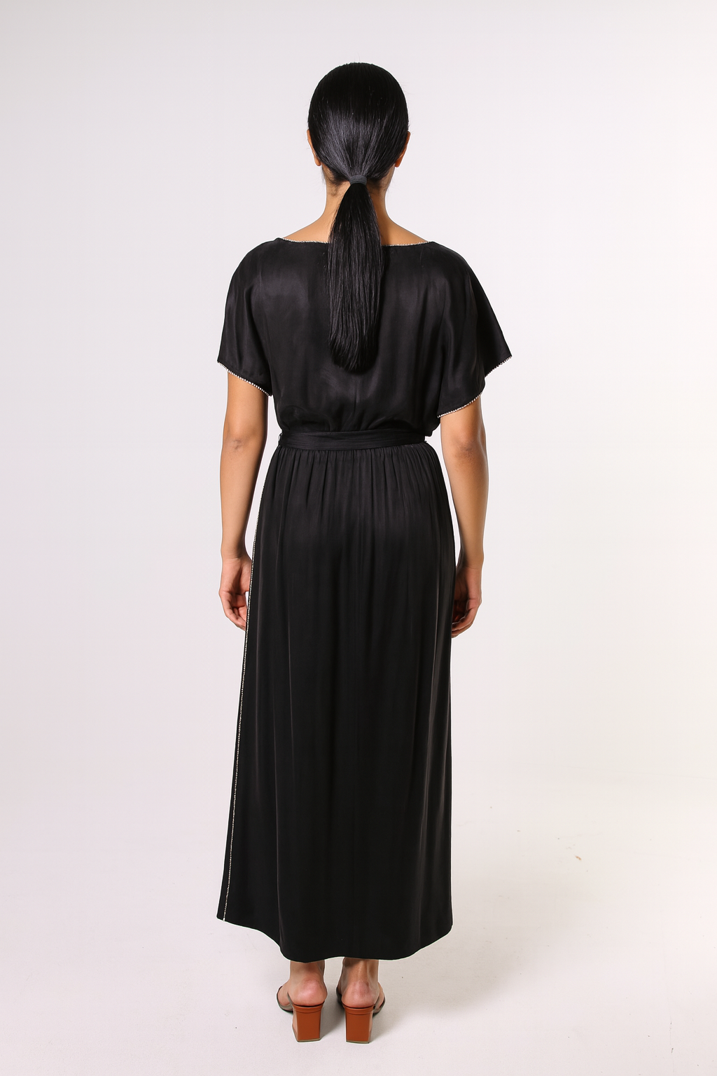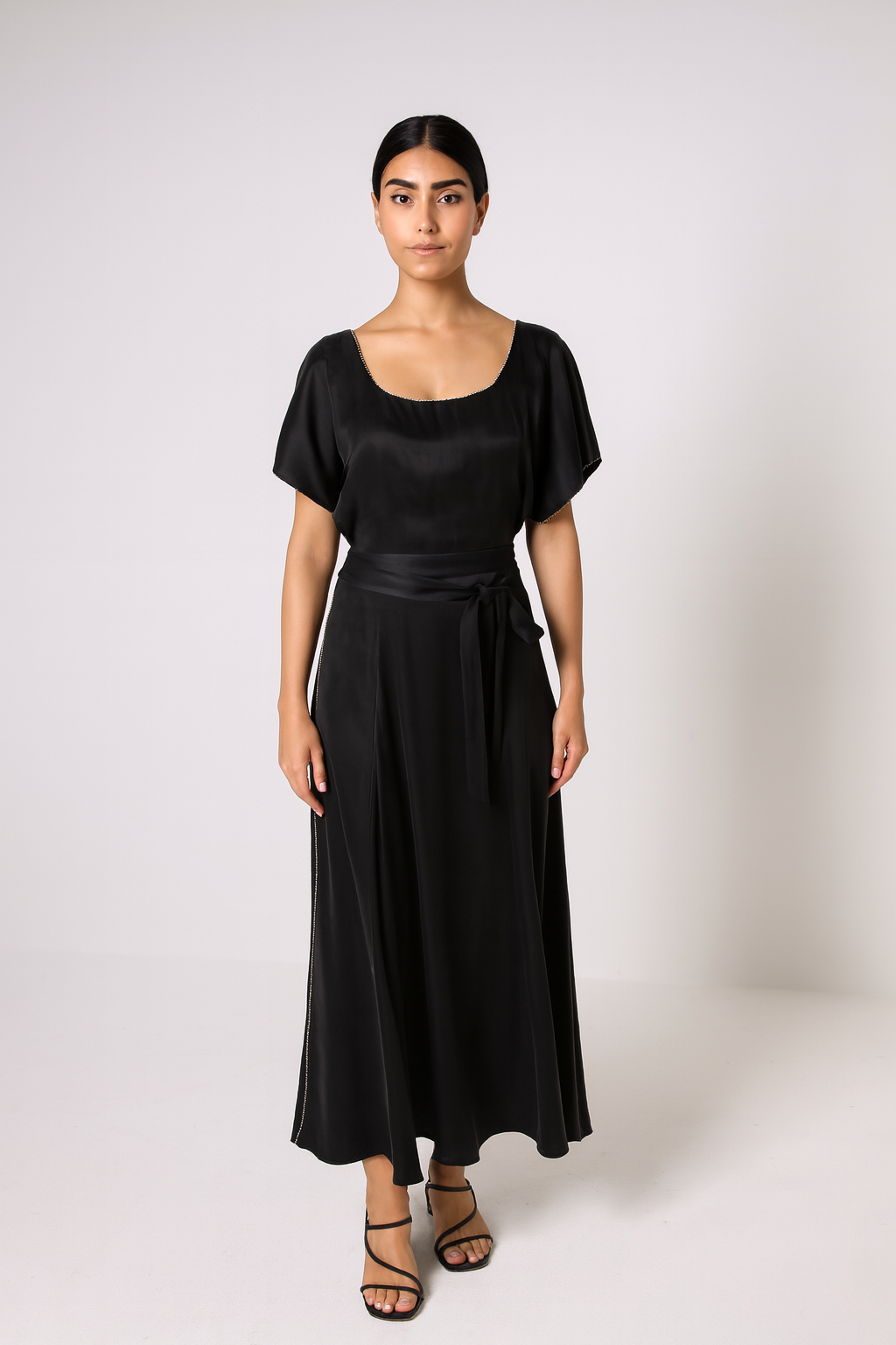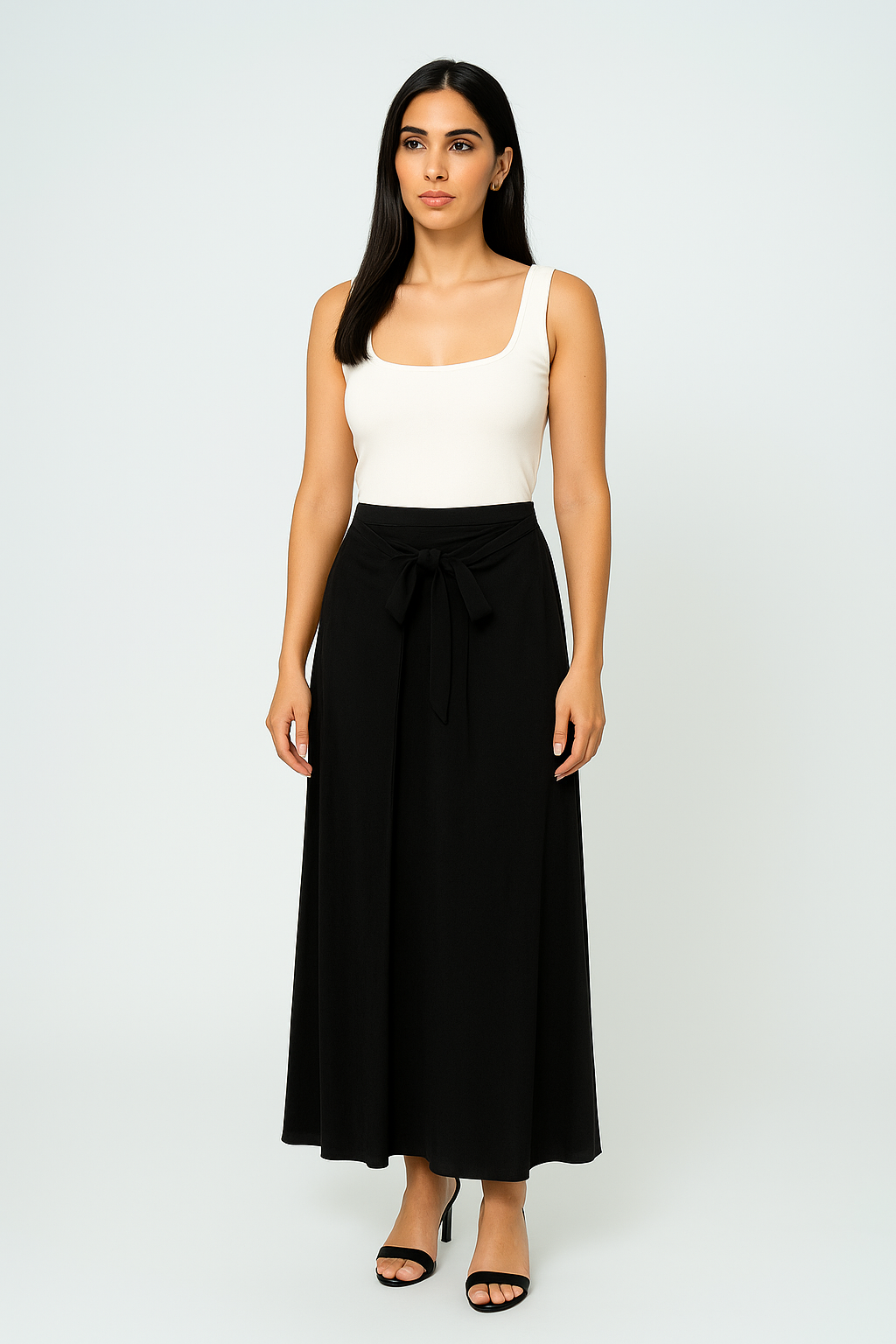 أضيفي لمسة من الأناقة إلى إطلالتك مع هذه التنورة الماكسي شبه الملفوفة، المصممة بزخارف أنيقة على كلا الجانبين لمظهر راقٍ. تتميز بحزام رباط على الخصر مع مطاط في الجزء الخلفي لراحة مثالية، بينما ينسدل القماش الناعم بانسيابية ليمنحك مظهراً أنثوياً أنيقاً. يبلغ طول التنورة حوالي 105 سم للمقاس الصغير، ويمكن تنسيقها مع التوب 2505020 لإطلالة متناسقة وعصرية.