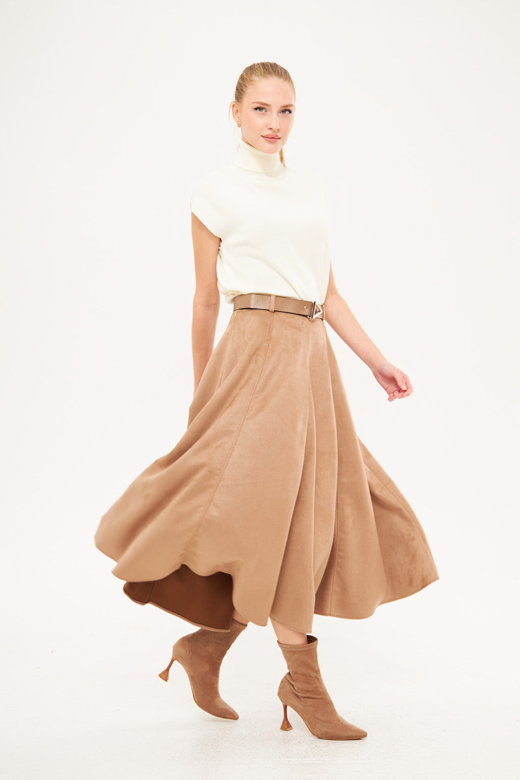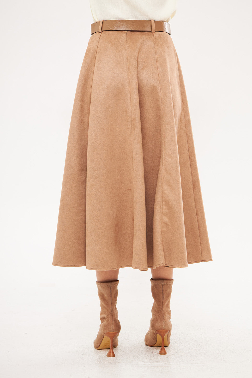 أضف لمسة من الرقي إلى مظهرك مع هذه التنورة متوسطة الطول بتصميم A، والتي صُممت لإطلالة أنيقة وسلسة. التصميم ذو الخصر العالي والقصّة المنظمة يخلقان شكلاً جذابًا، مثاليًا للارتداء مع قمصان ضيقة أو فضفاضة.