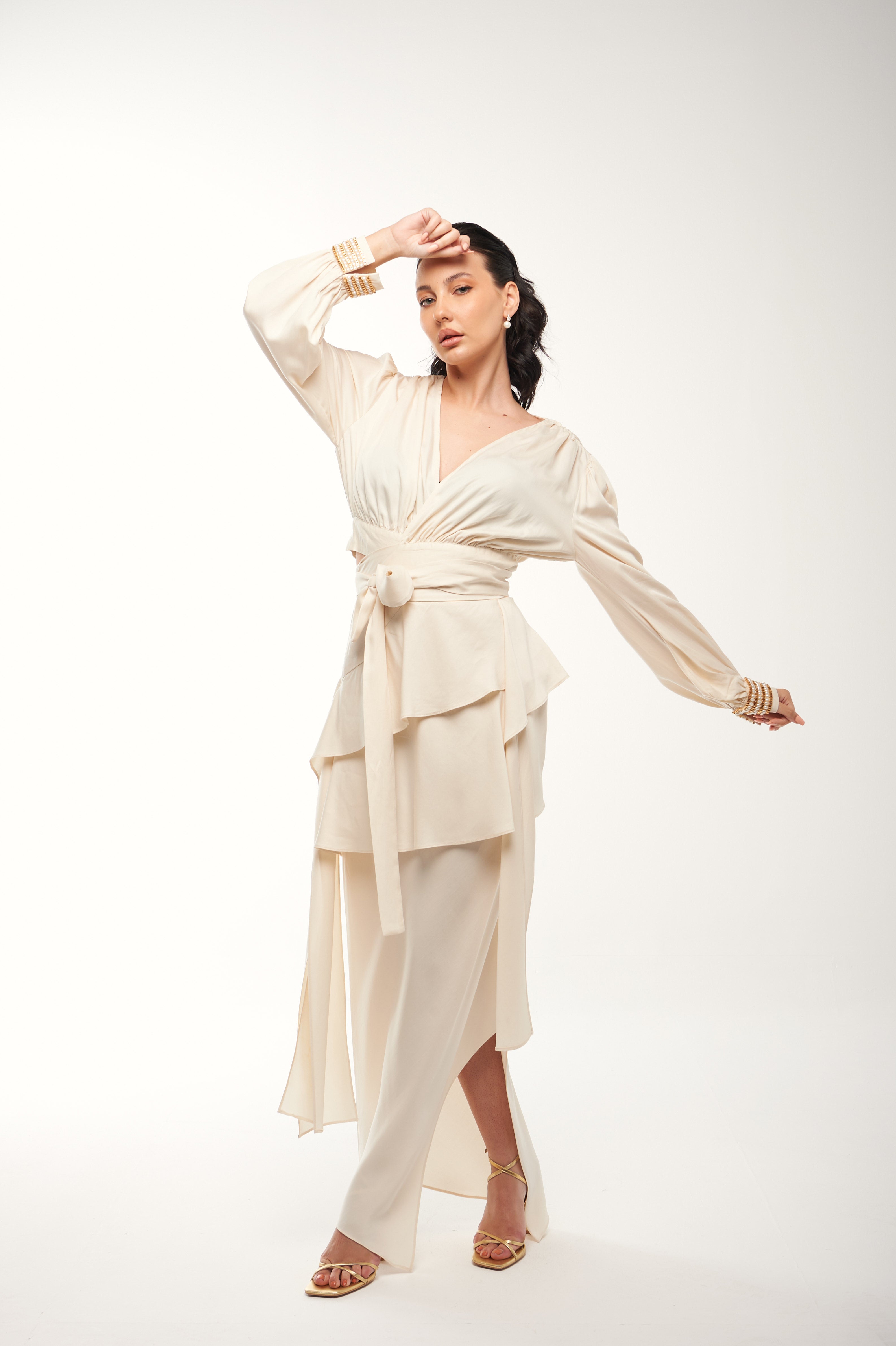 الخامة الأساسية: مزيج من الكريب والشيفون الخفيف – مريح وانسيابي