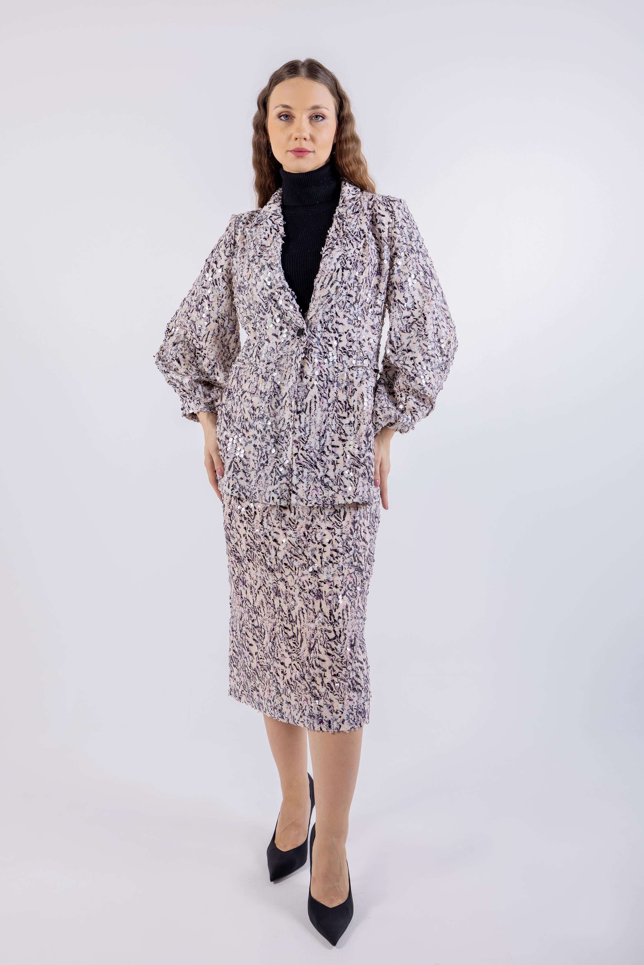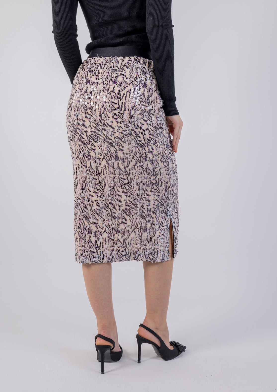 اخطفي الأنظار بتنورة ميدي ذات تصميم مزخرف بالترتر، صُممت لتضفي لمسة من التألق على خزانة ملابسك. تجذب تفاصيل الترتر المعقدة الضوء مع كل خطوة، مما يجعلها مثالية للمناسبات المسائية أو إضافة القليل من التألق إلى يومك. تخلق الصورة الظلية الكلاسيكية ذات القلم الرصاص ملاءمة جذابة، بينما يوفر الطول المتوسط لمسة أنيقة. يمكنك ارتداؤها مع بلوزة بسيطة أو بلوزة ملائمة لإطلالة أنيقة وجذابة تتألق بالرقي.