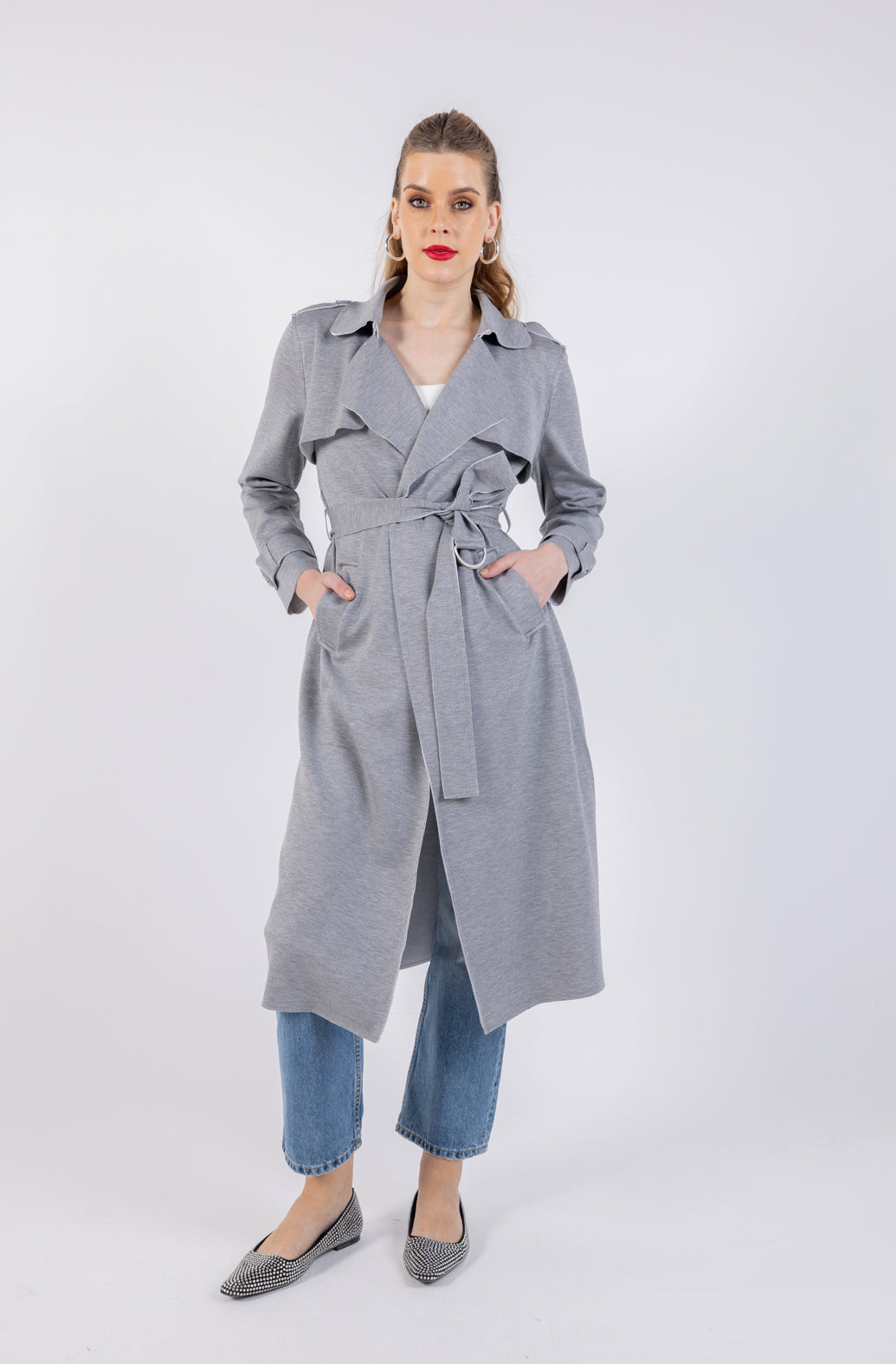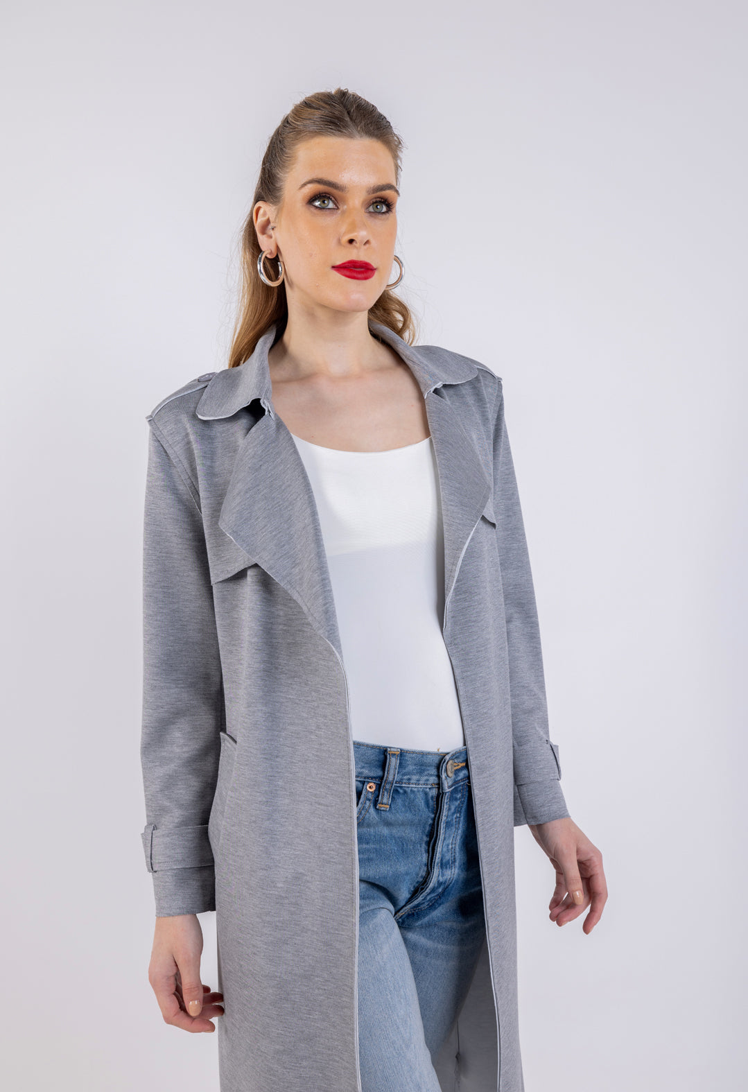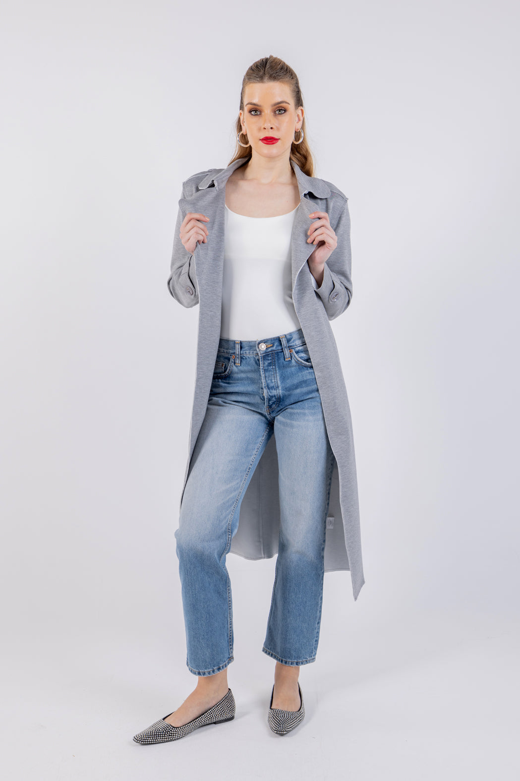 معطف سادة متوسط ​​الطول بفتحة رقبة مسننة