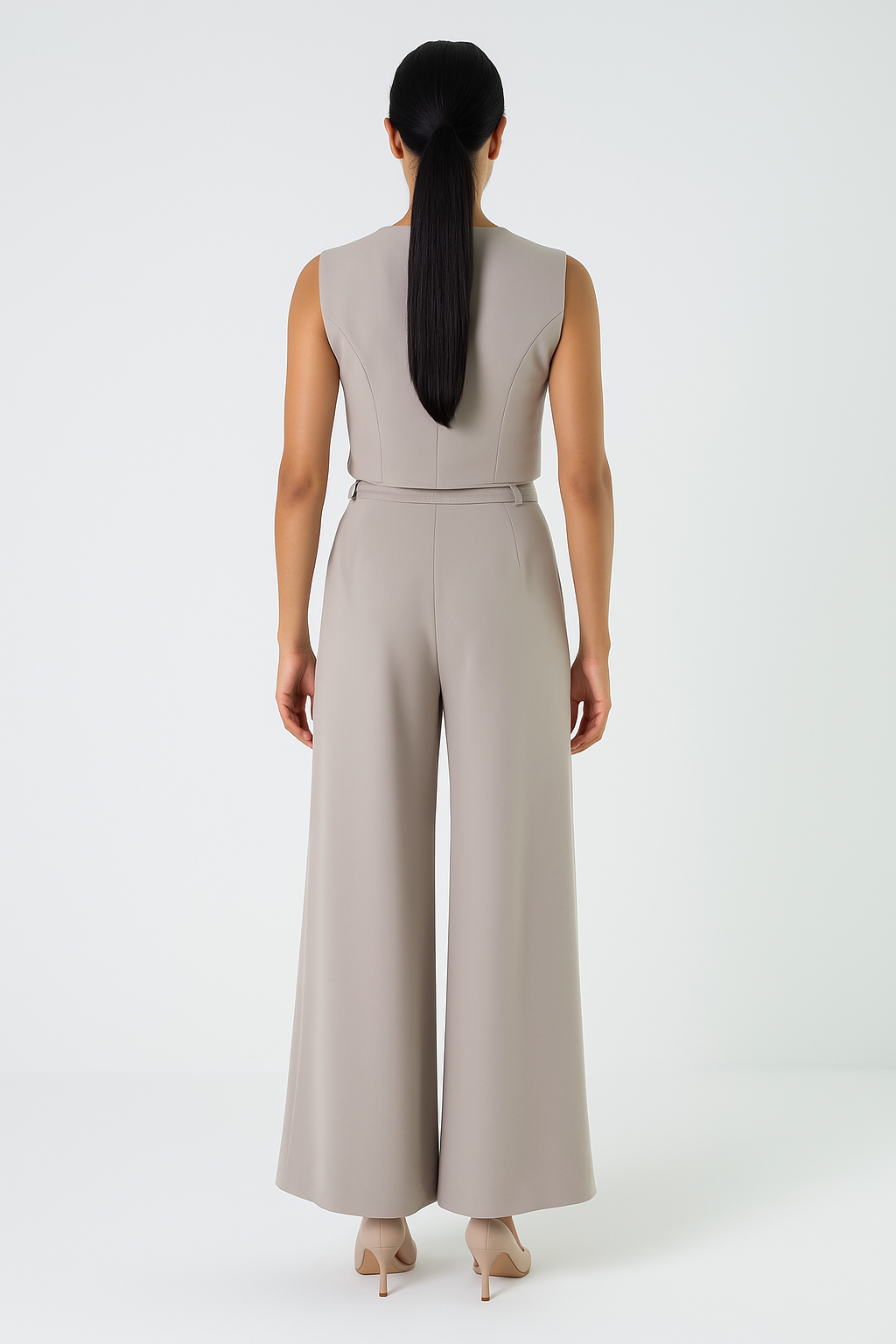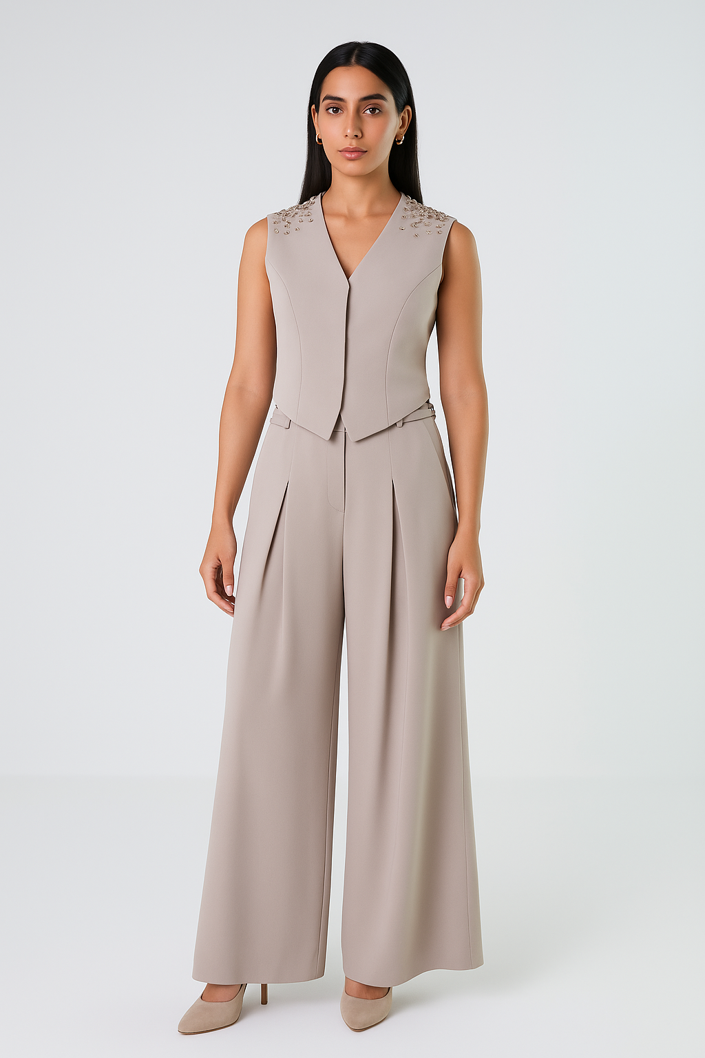 ارتقي بإطلالاتك الرسمية وشبه الرسمية مع هذا الفيست المصمم بقصّة عصرية وهيكلية مع تطريز ناعم على الأكتاف. مصنوع من قماش عالي الجودة بملمس أنيق، يتميّز بياقة على شكل V وخطوط قصّ تشكّل Silhouette أنثوية جذابة مع حافة أمامية مدبّبة تمنح مظهراً أكثر طولاً ورشاقة.