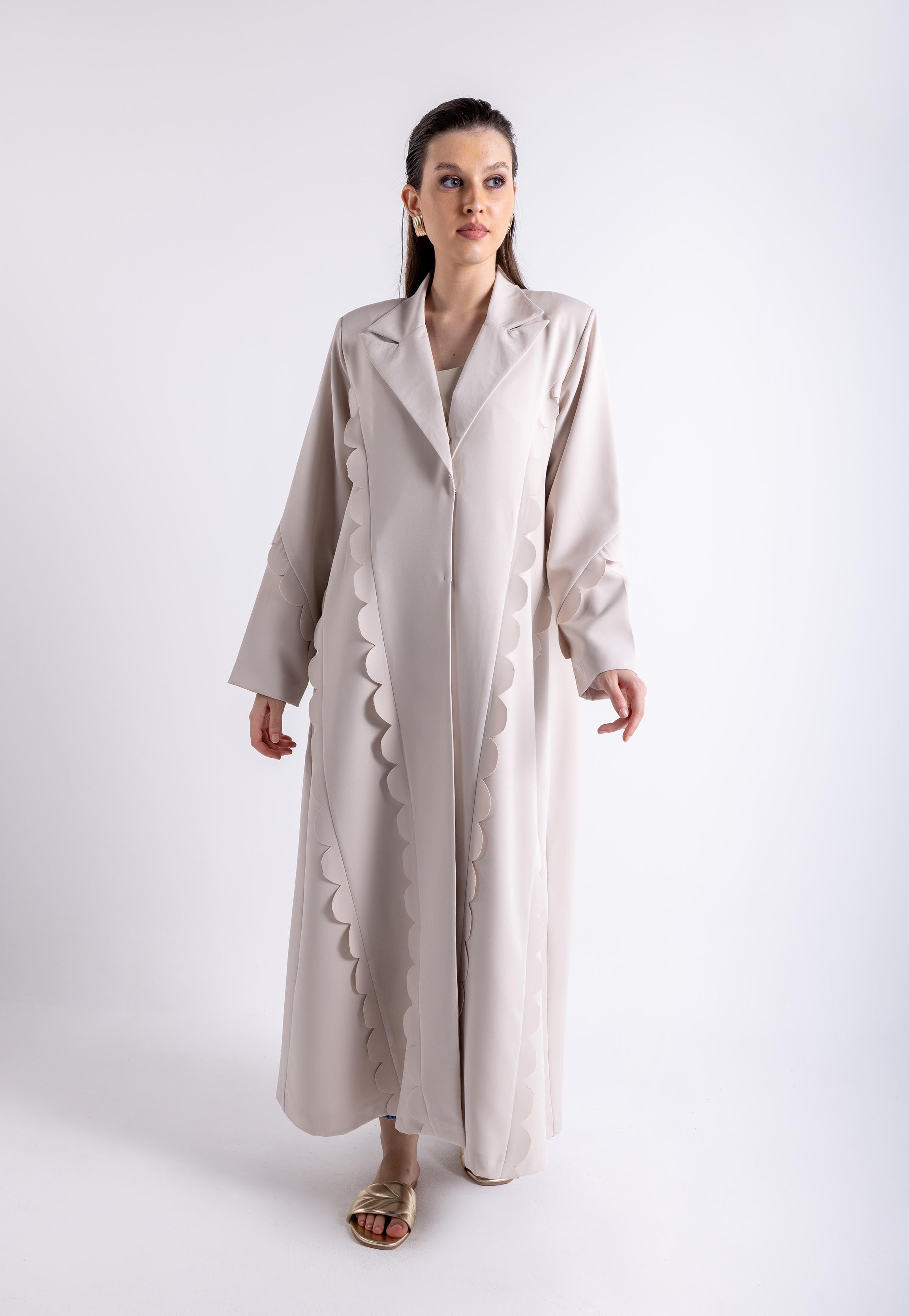Perfect for sophisticated events or a fashionable day out, this abaya is a testament to refined style and innovative design, ensuring you look effortlessly poised and distinctively chic.