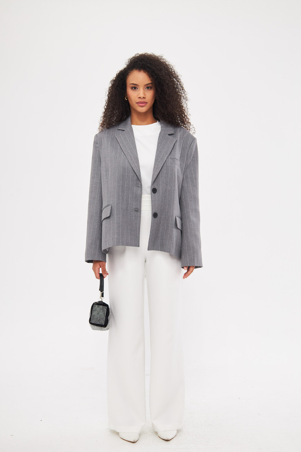 Make a sophisticated statement with this striped two-toned blazer, featuring a classic design with a modern twist. The contrasting tones and refined stripes add depth and visual appeal, making it a versatile addition to your wardrobe. With functional pockets and a tailored fit, this blazer is both stylish and practical.
