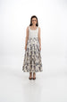 This elegant skirt features a delicate floral jacquard print in soft ivory and charcoal tones. Designed with...