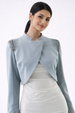 Designed to elevate refined festive looks, this Embellished Cropped Overlay Jacket offers a sophisticated layering option for Ramadan evenings and Eid celebrations. The jacket features a modern asymmetrical overlay silhouette, enhanced with delicate stone embellishments along the shoulders for a subtle yet luxurious statement. Its cropped length adds contemporary elegance while maintaining modest appeal.