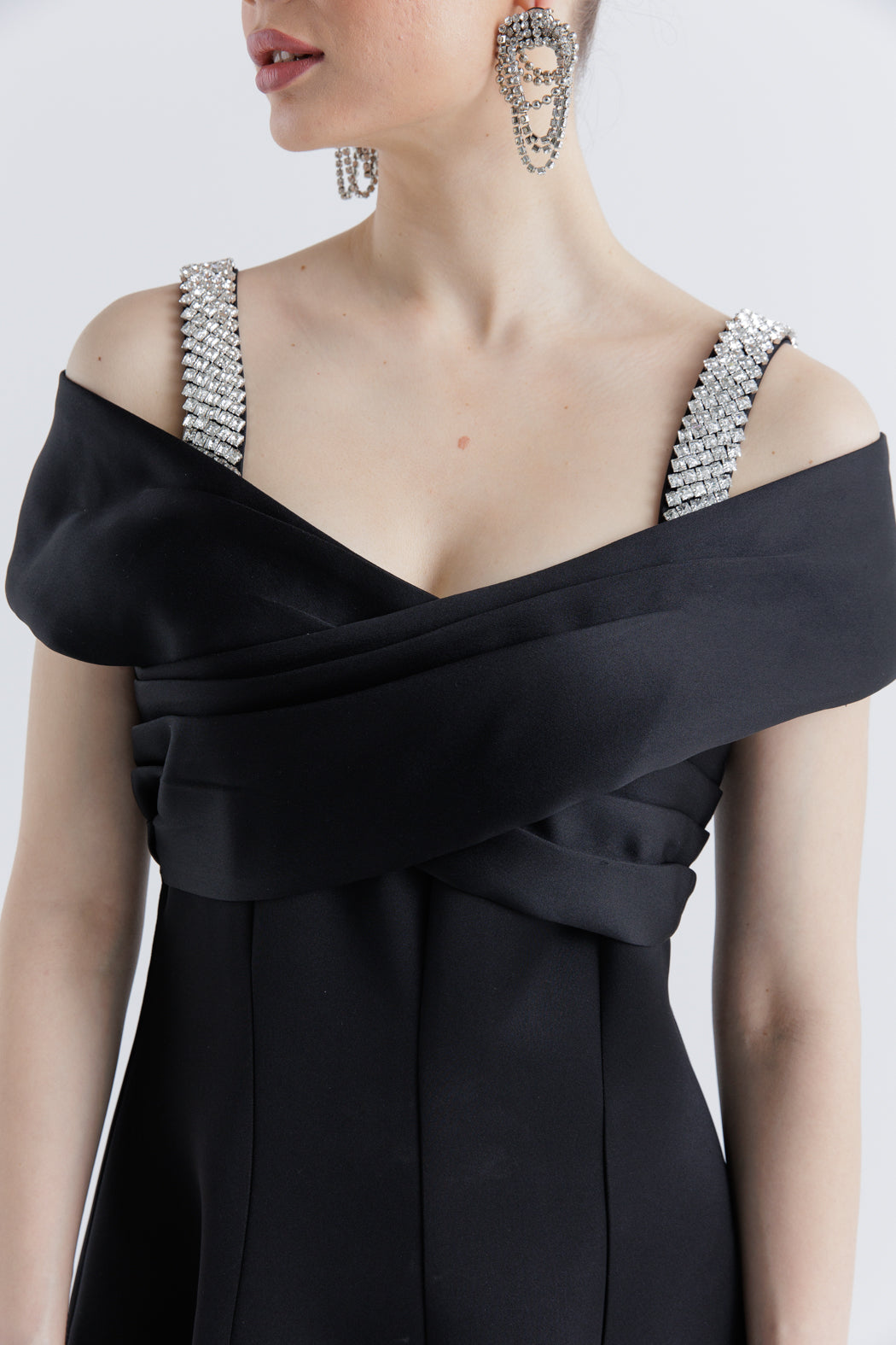Step into the spotlight with this show-stopping off-shoulder gown, designed to captivate with its dramatic elegance and exquisite craftsmanship. A fusion of modern sophistication and timeless allure, this masterpiece is the epitome of high-fashion glamour.
