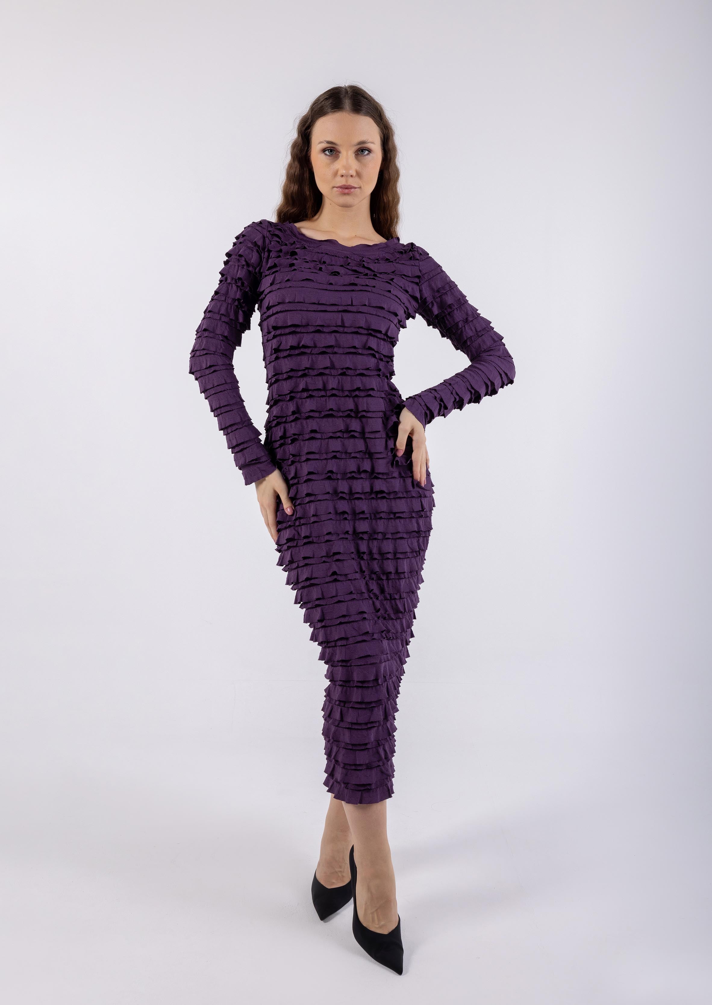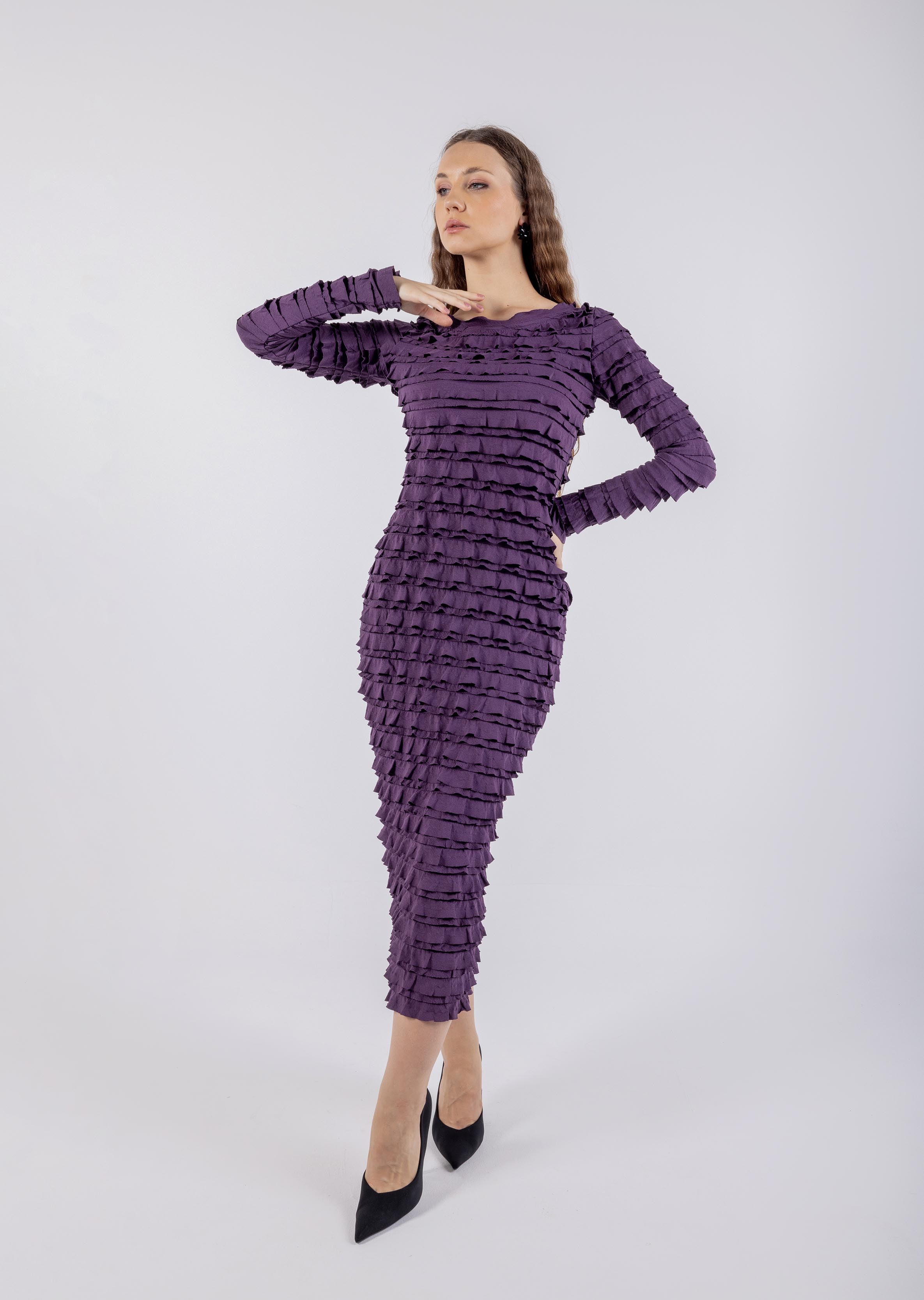 Ruffles All Over Solid Midi Dress\ ناتسف يديم نولب دحوم عم تاقبط نم ليتنادلا