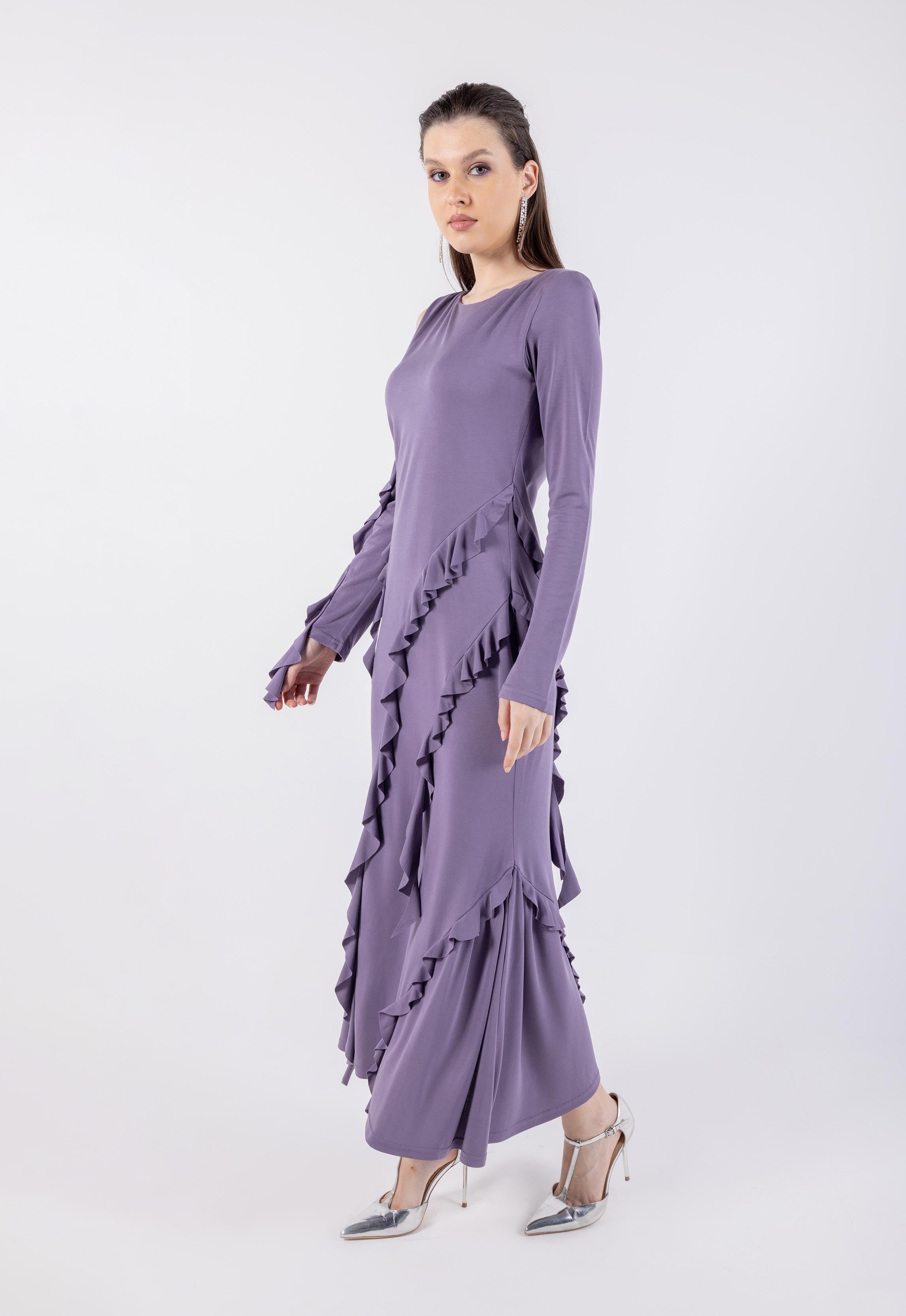 Off-Shoulder Solid Ruffled Dress\سف هداس ةشكشكب فاتكأب ة