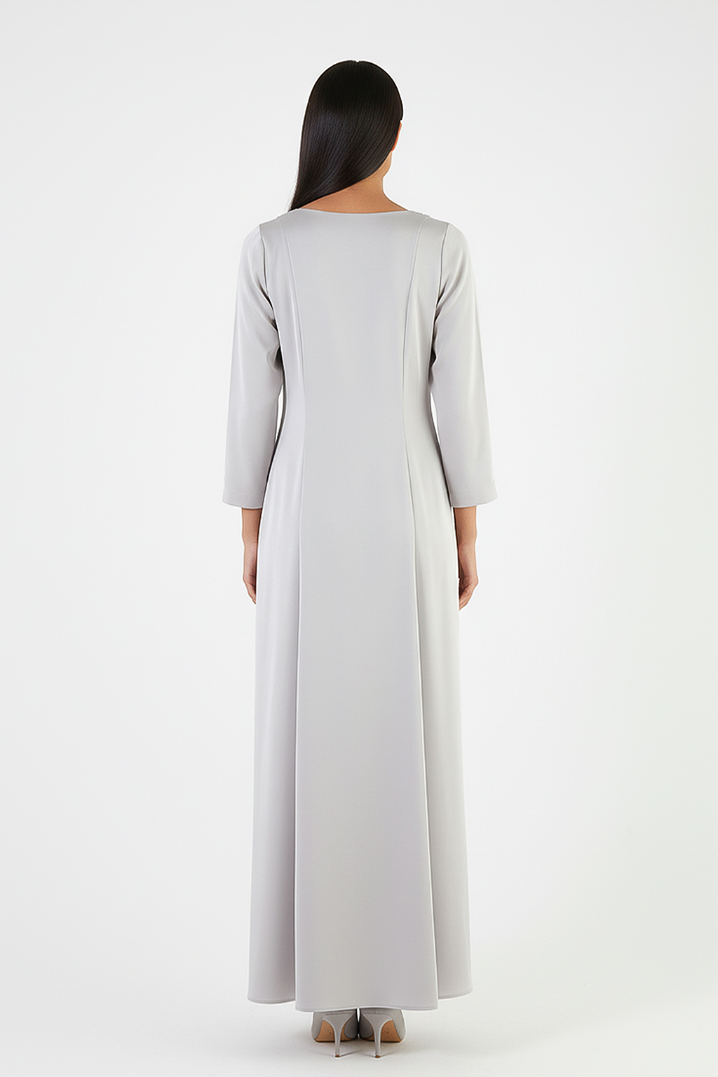 A refined long satin dress crafted for timeless elegance and graceful movement. The smooth, fluid fabric creates a soft A-line silhouette that flatters effortlessly.