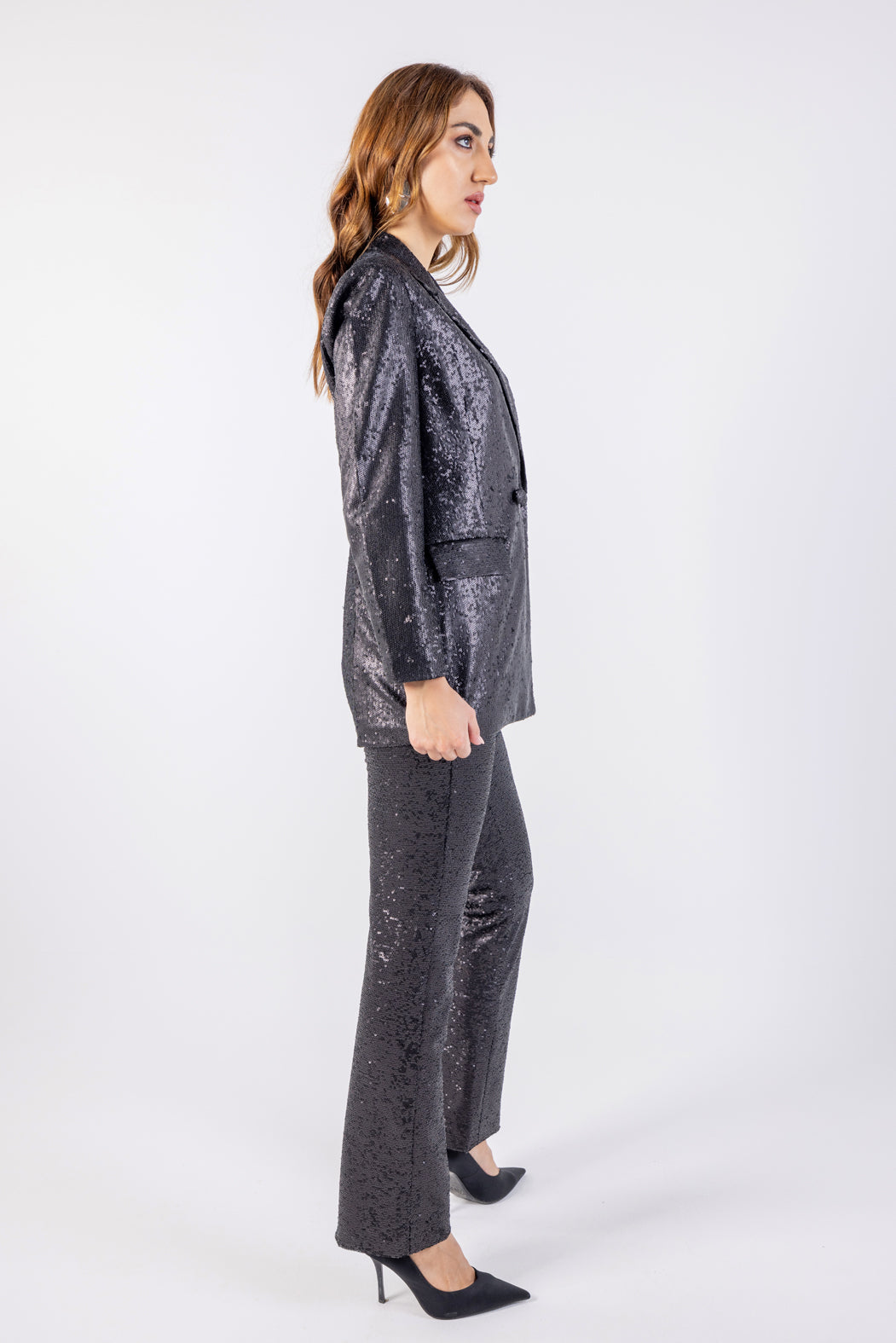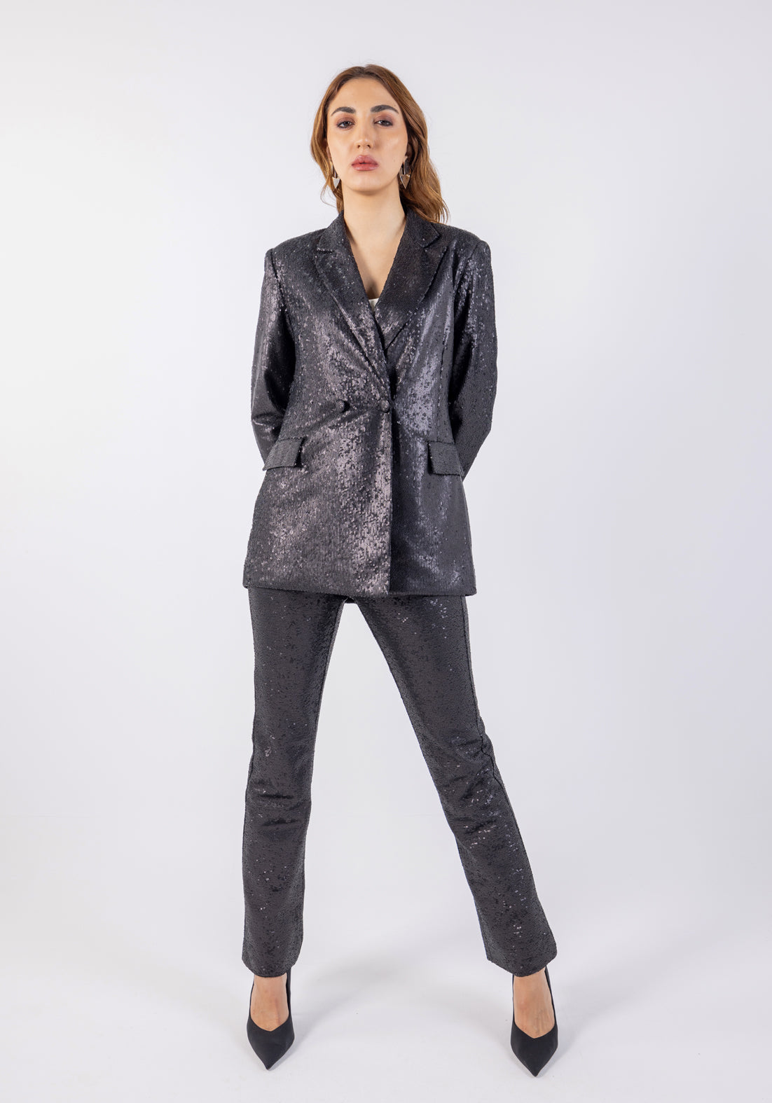 Make a dazzling statement with this stunning sequin-embellished blazer, designed to add glamour and sophistication to your wardrobe. This blazer features a classic tailored fit with a single button closure, structured lapels, and practical front flap pockets. The shimmering sequin detailing creates an eye-catching effect, perfect for evening events, parties, and special occasions. Whether styled with matching trousers or dressed down with denim, this blazer is a show-stopping addition to any outfit.