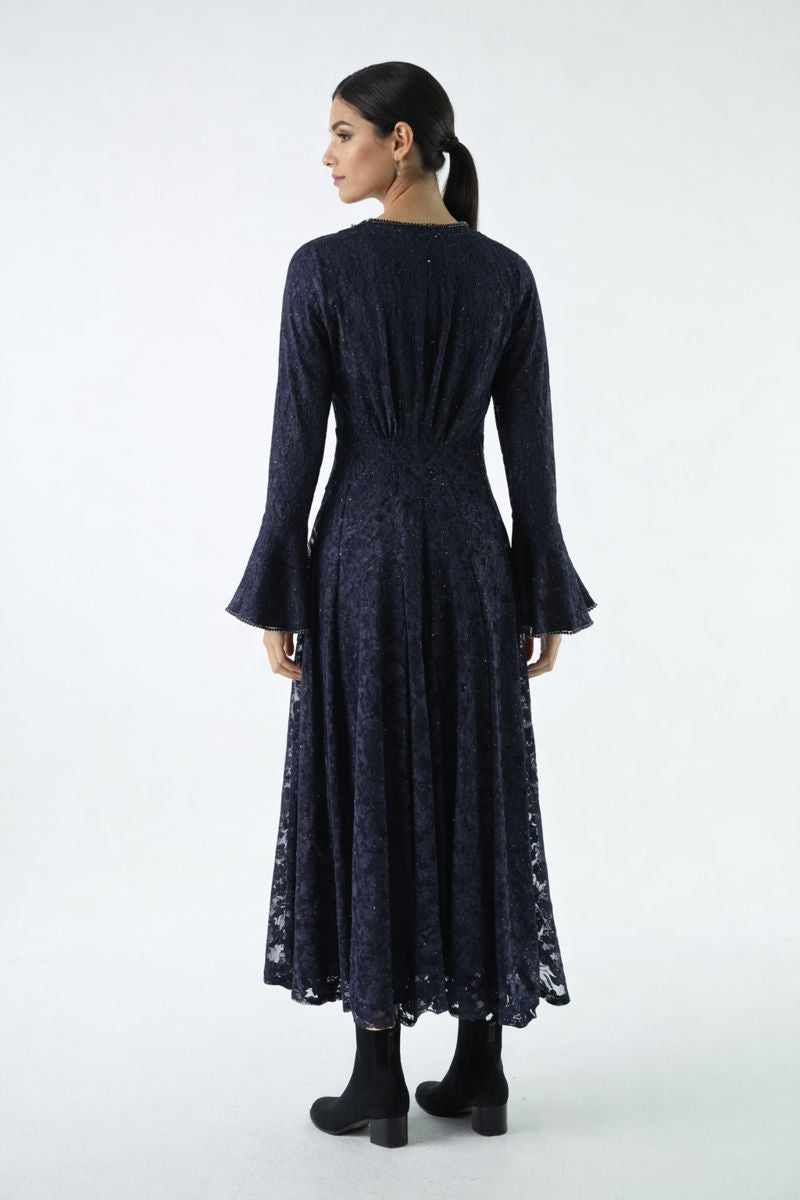 This elegant lace maxi dress from our Winter Collection is designed to deliver timeless sophistication with a refined, feminine silhouette. Crafted from delicate lace fabric and finished with a smooth inner lining for comfortable coverage, it features a fitted bodice that flows into a graceful full-length skirt—perfect for winter occasions and evening events.