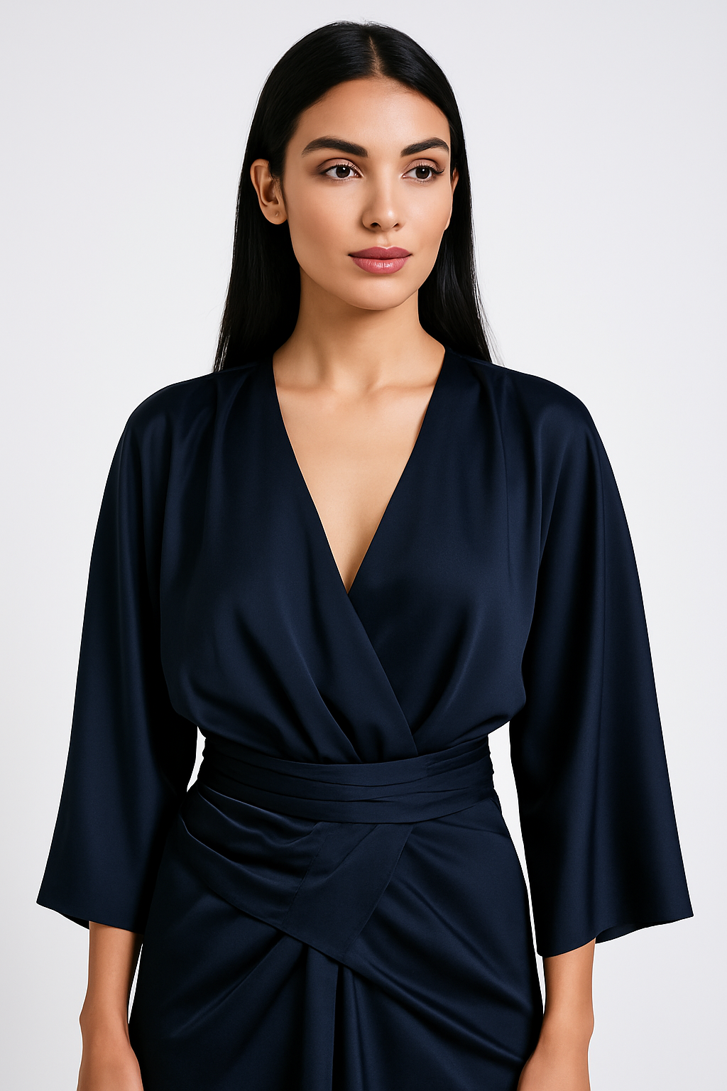 Elegant Wrap-Effect Satin Maxi Dress