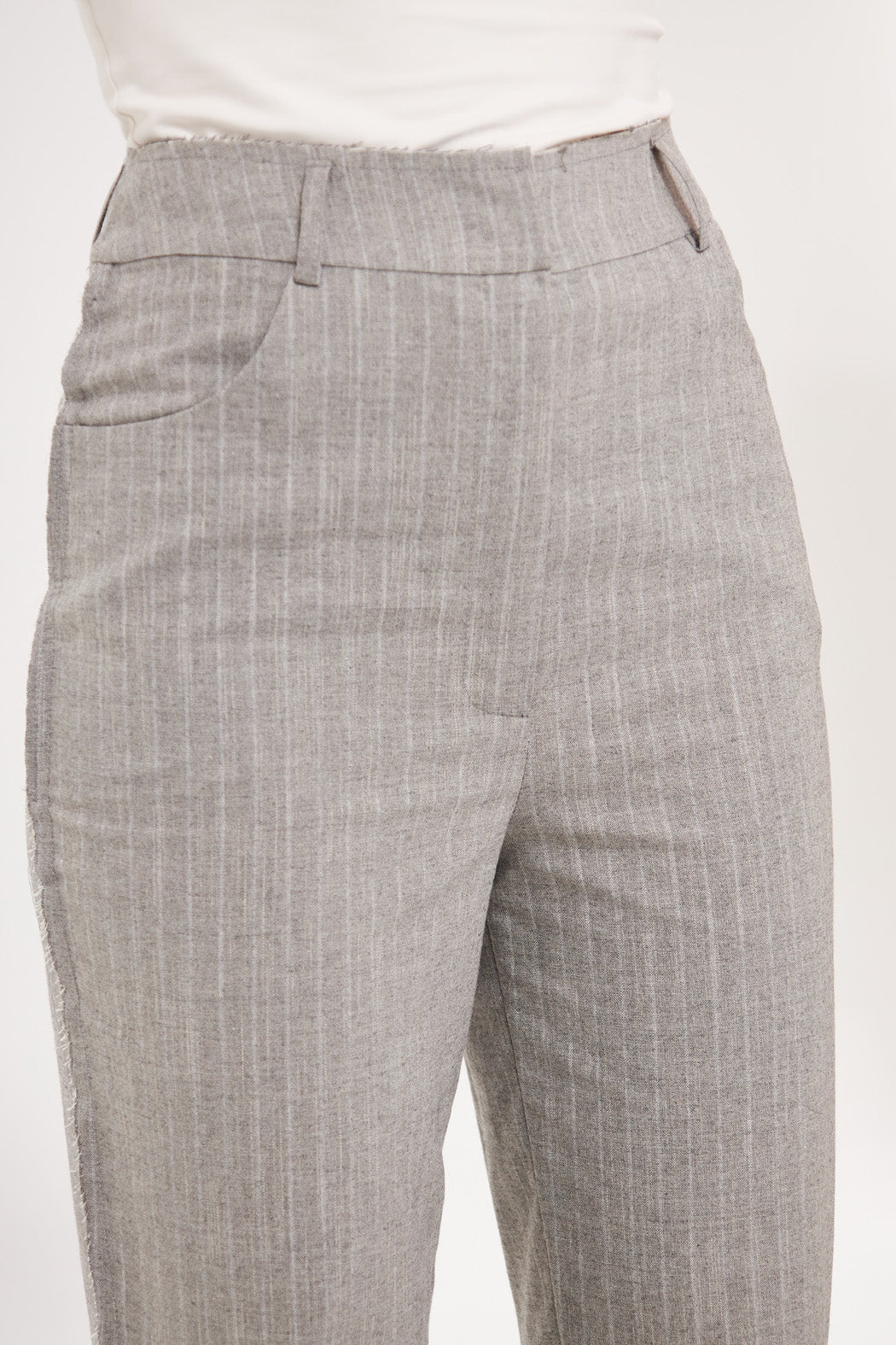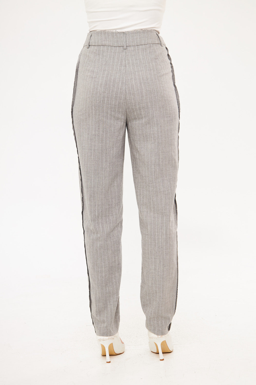 Elevate your style with these chic striped two-toned slim fit trousers. With a sleek design and contrasting tones, these trousers offer a unique and fashionable look perfect for both casual and semi-formal settings. The slim fit silhouette adds a modern touch while enhancing the natural shape of the leg.