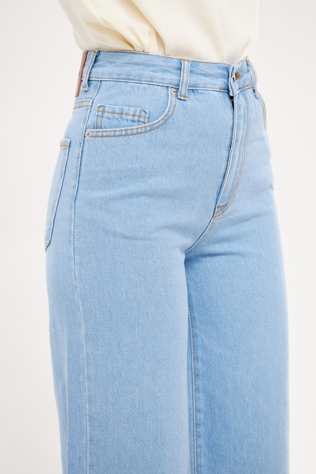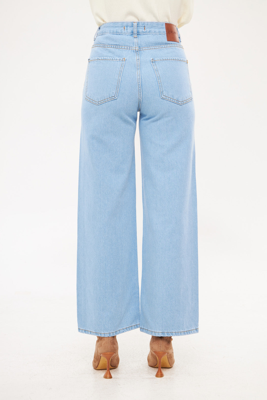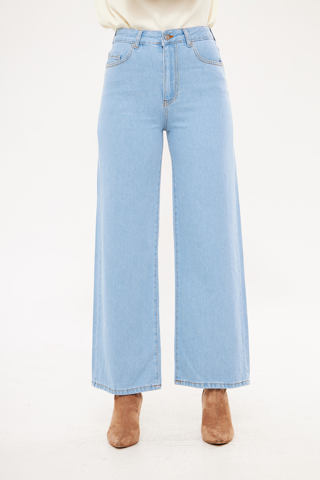These straight-leg denim trousers offer a chic, flowy silhouette with a high-rise waist, providing comfort and effortless style. Pair them with any top or jacket to complete a trendy, casual look.