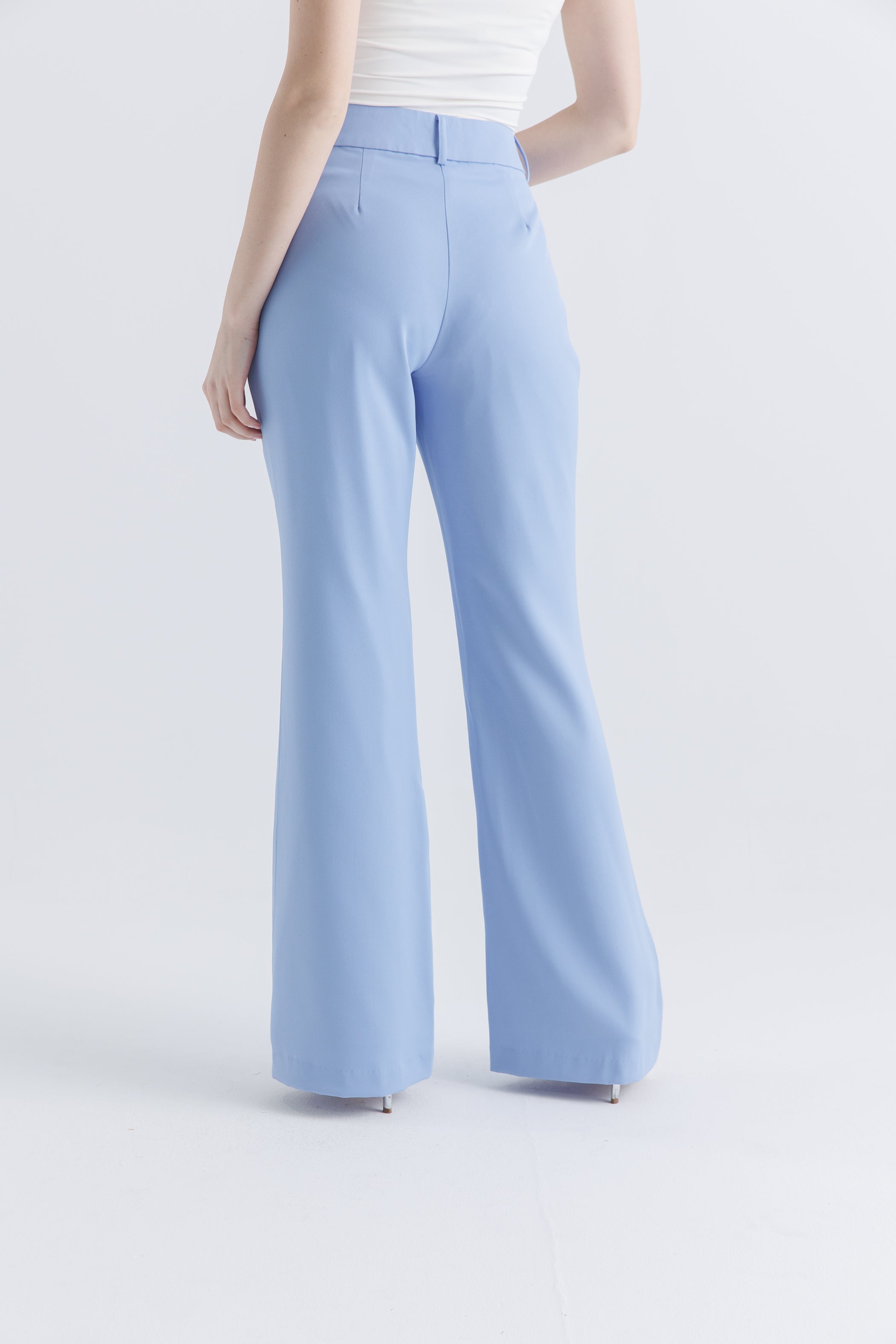 Elevate your wardrobe with these elegant high-waisted tailored pants, crafted for a polished and flattering silhouette. Featuring a relaxed wide-leg cut, these pants offer a fluid drape and timeless sophistication, perfect for both office and evening wear. The structured waistband with belt loops and concealed front zip ensure a clean, seamless finish. Pair effortlessly with blouse code 2505011 for a complete, refined look.