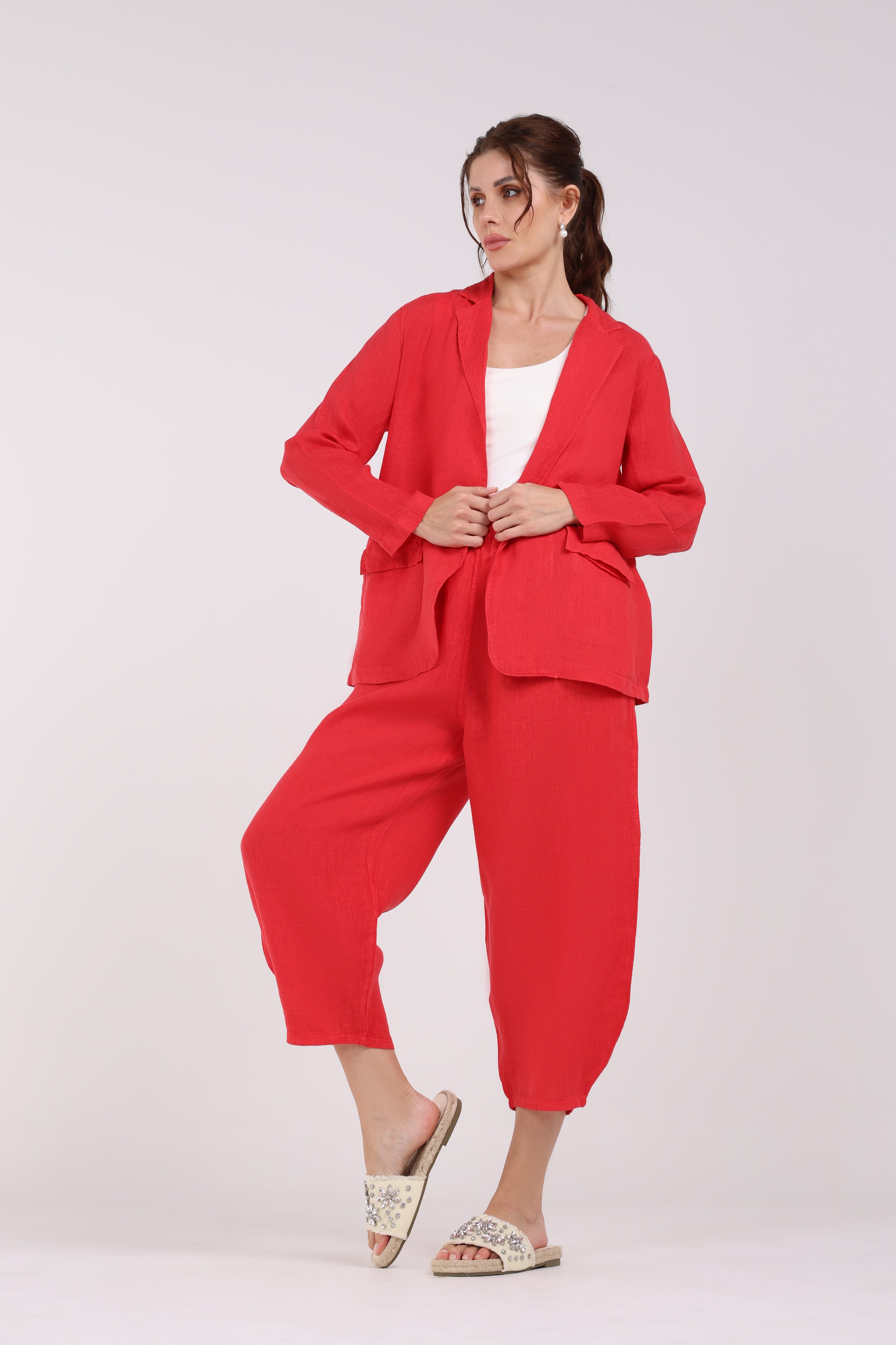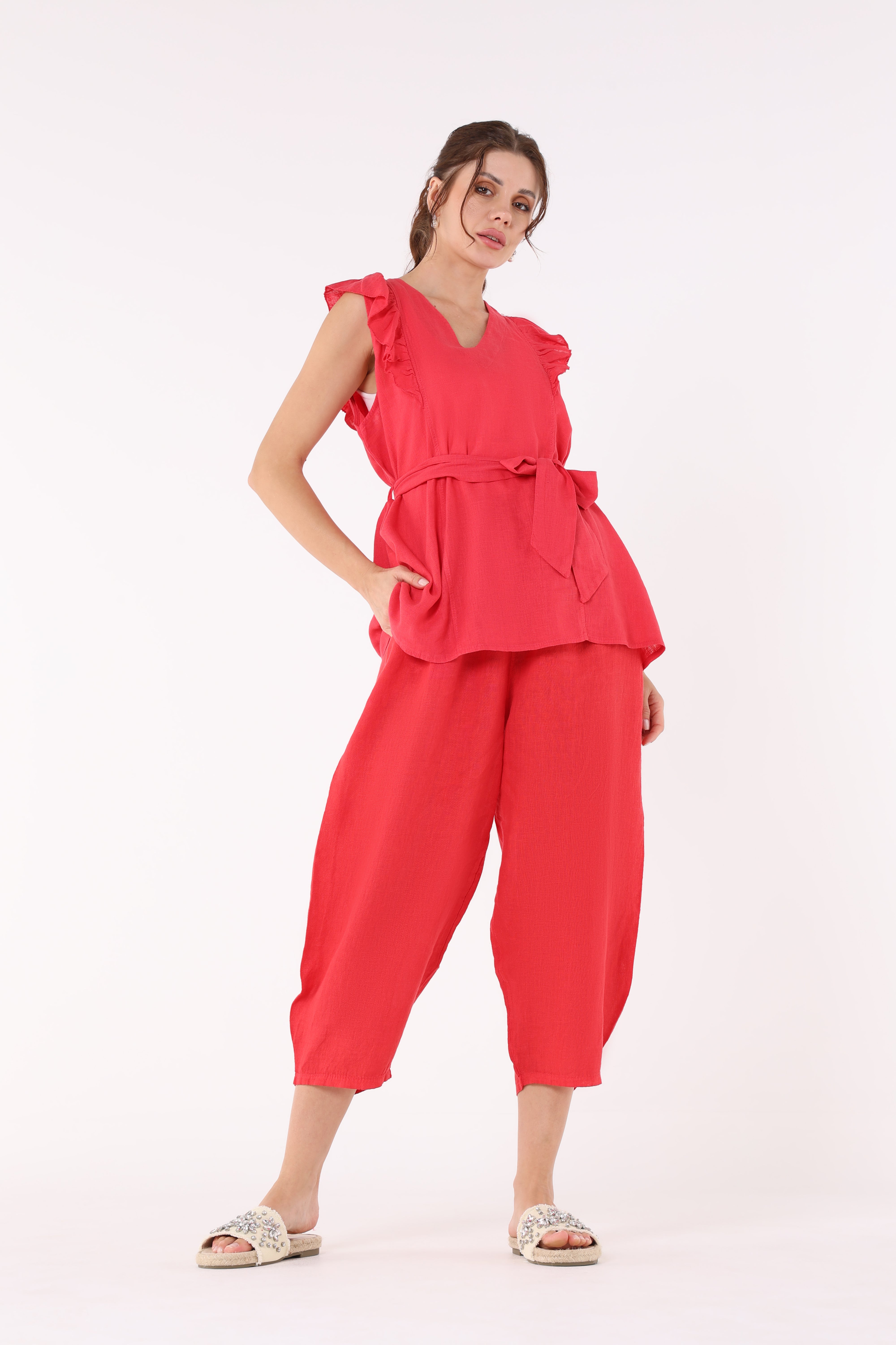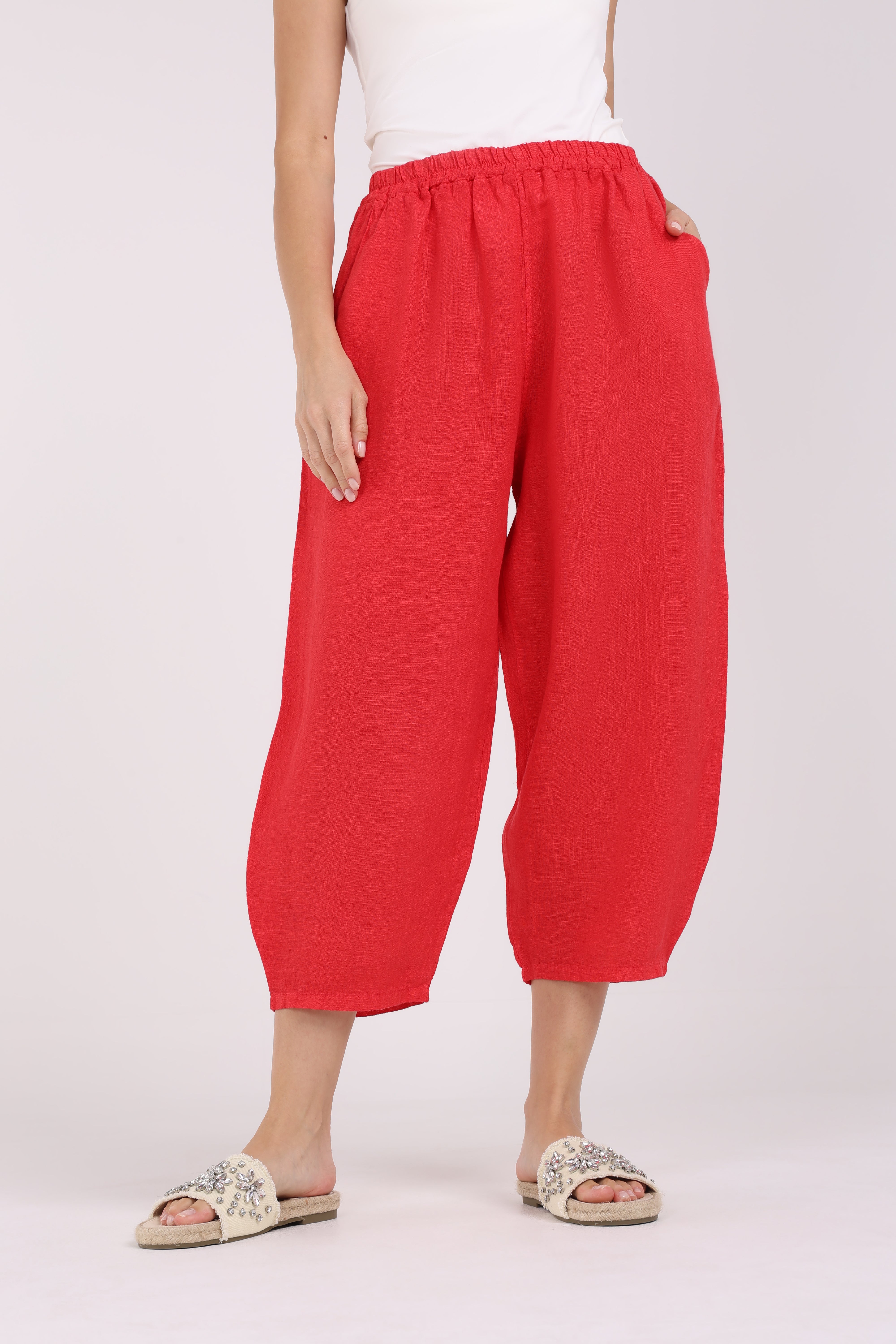 These sleek and versatile trousers offer a modern twist with their elasticated hems, combining style and comfort. The solid color provides a clean, minimalist look, while the relaxed fit through the legs tapers into a chic, gathered finish at the ankle. Designed with an elastic waistband for added comfort, these trousers are perfect for everyday wear or casual outings. Whether paired with a blouse for a refined look or a casual top for a laid-back vibe, these trousers are a stylish yet practical addition to your wardrobe.