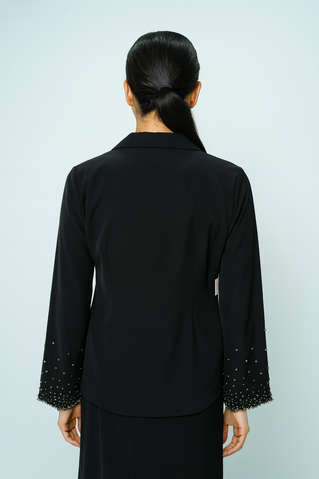 • Sleeves: Long sleeves with bead-embellished cuffs